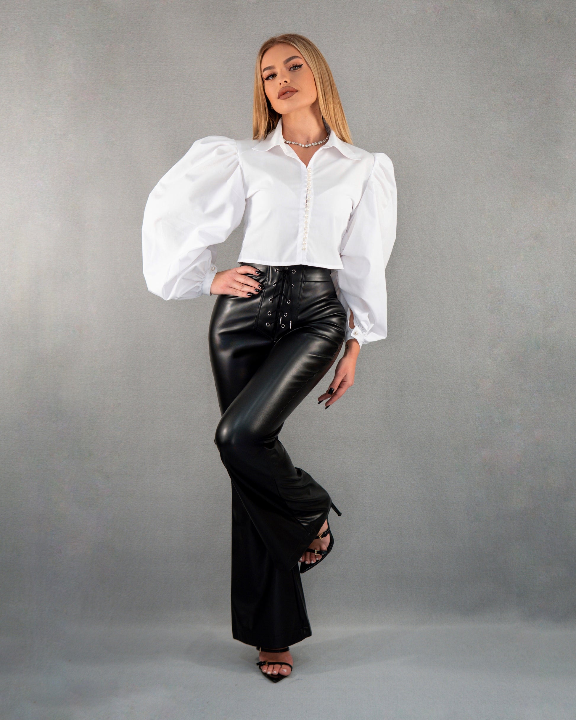 Colanți cu talie înaltă, reglabili și evazați - negru
