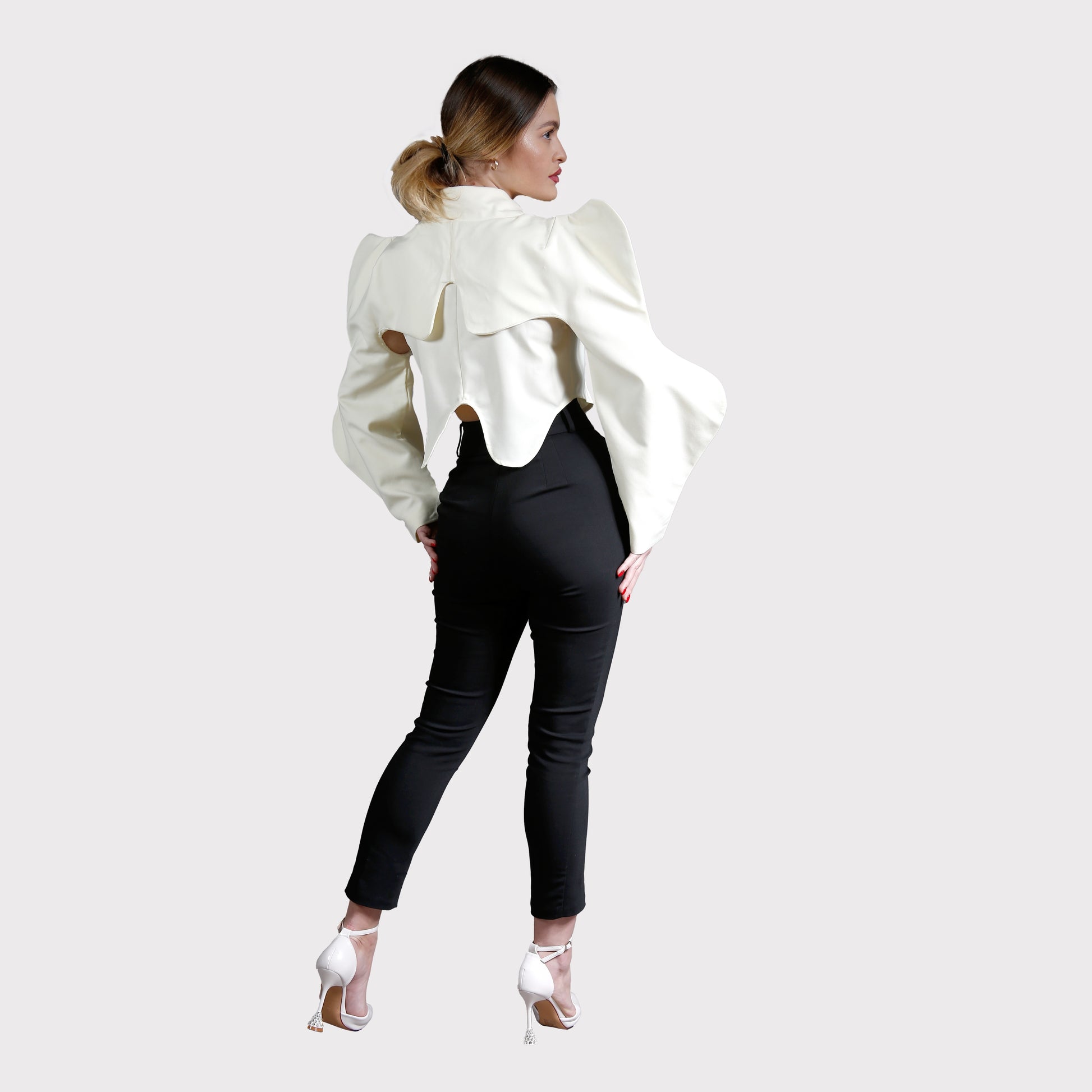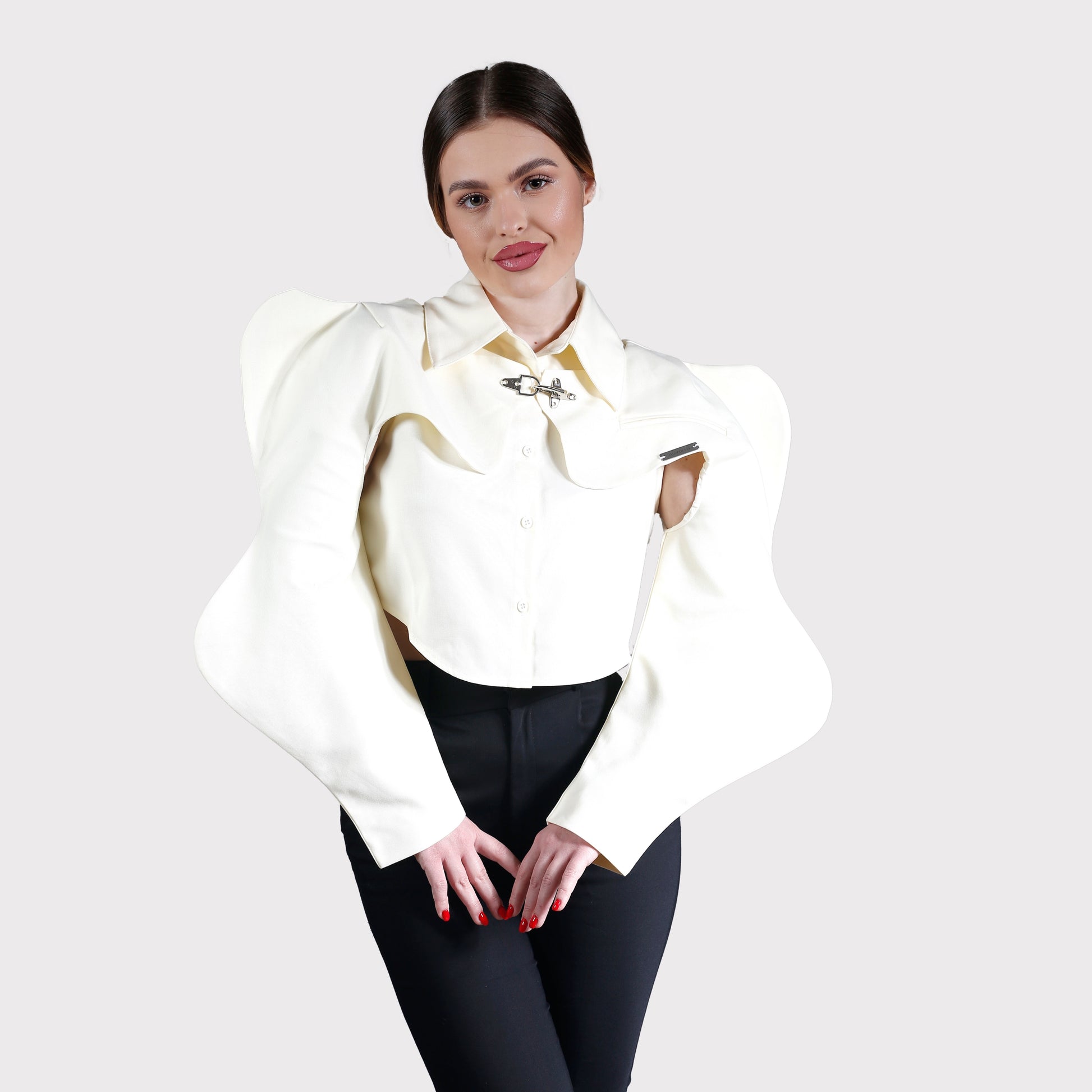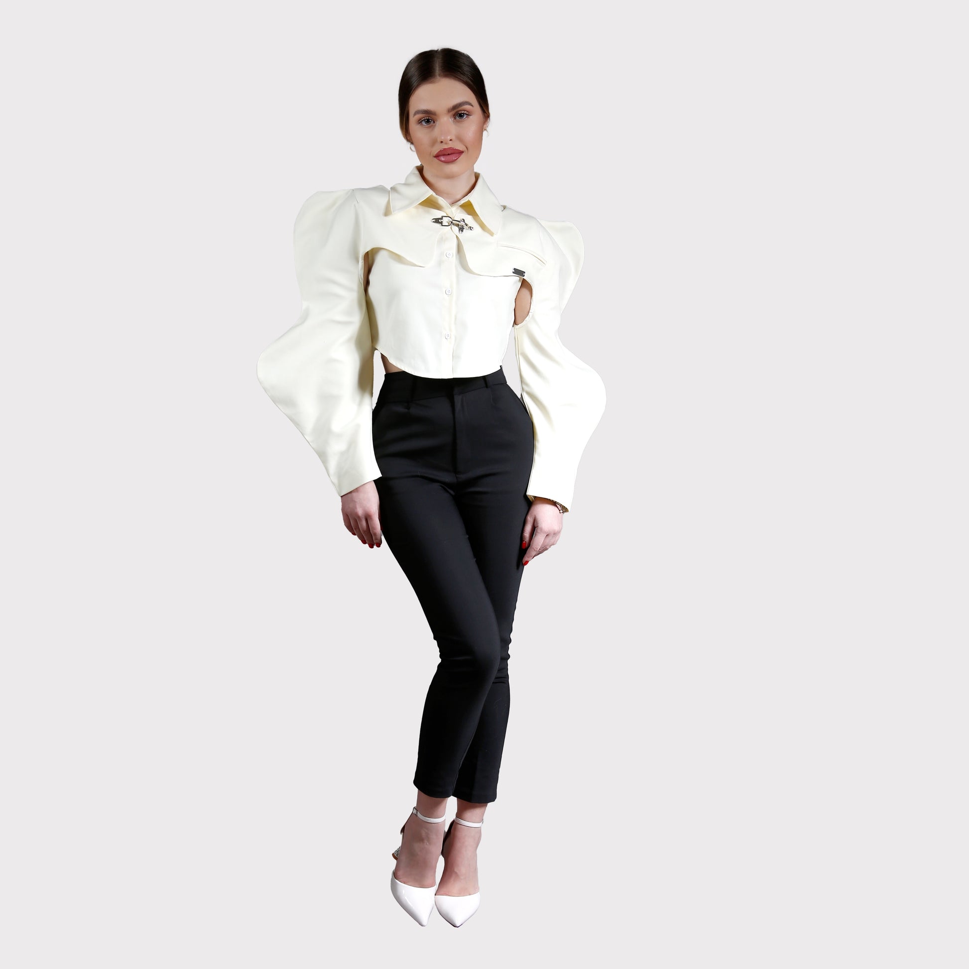 Cămașă din 2 piese: maieu și crop top cu mâneci - crem