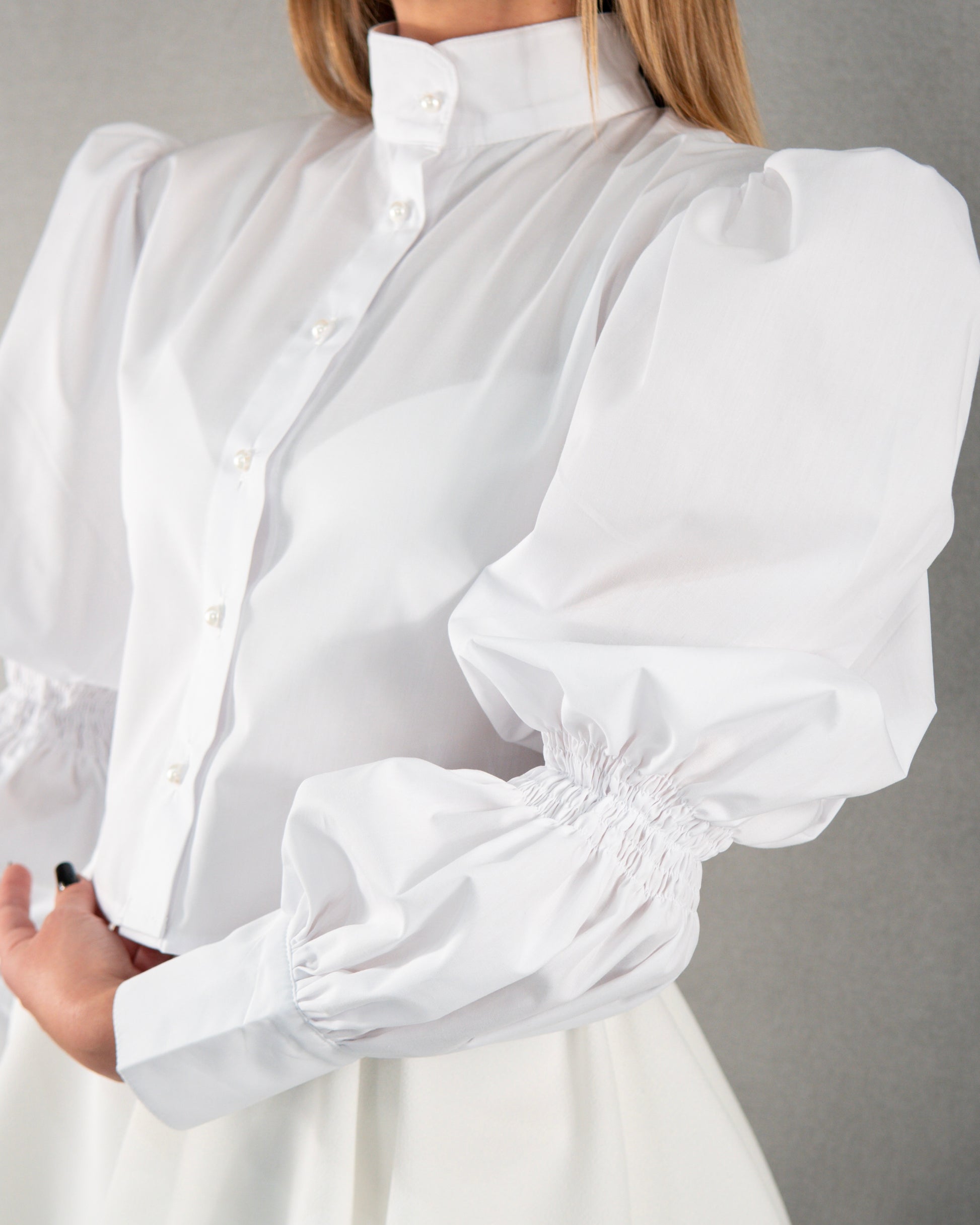 Cămașă scurtă cu guler și mâneci bufante - alb