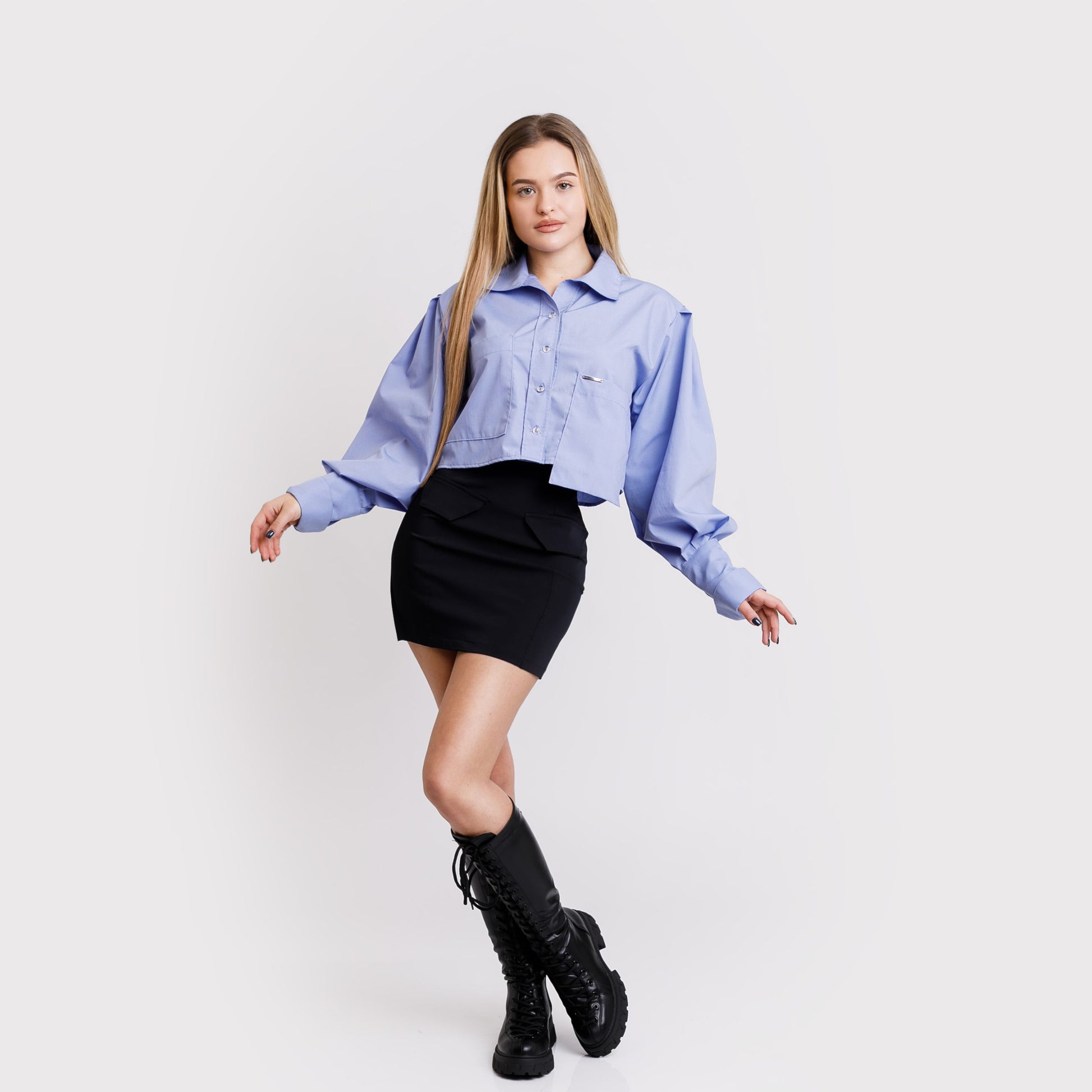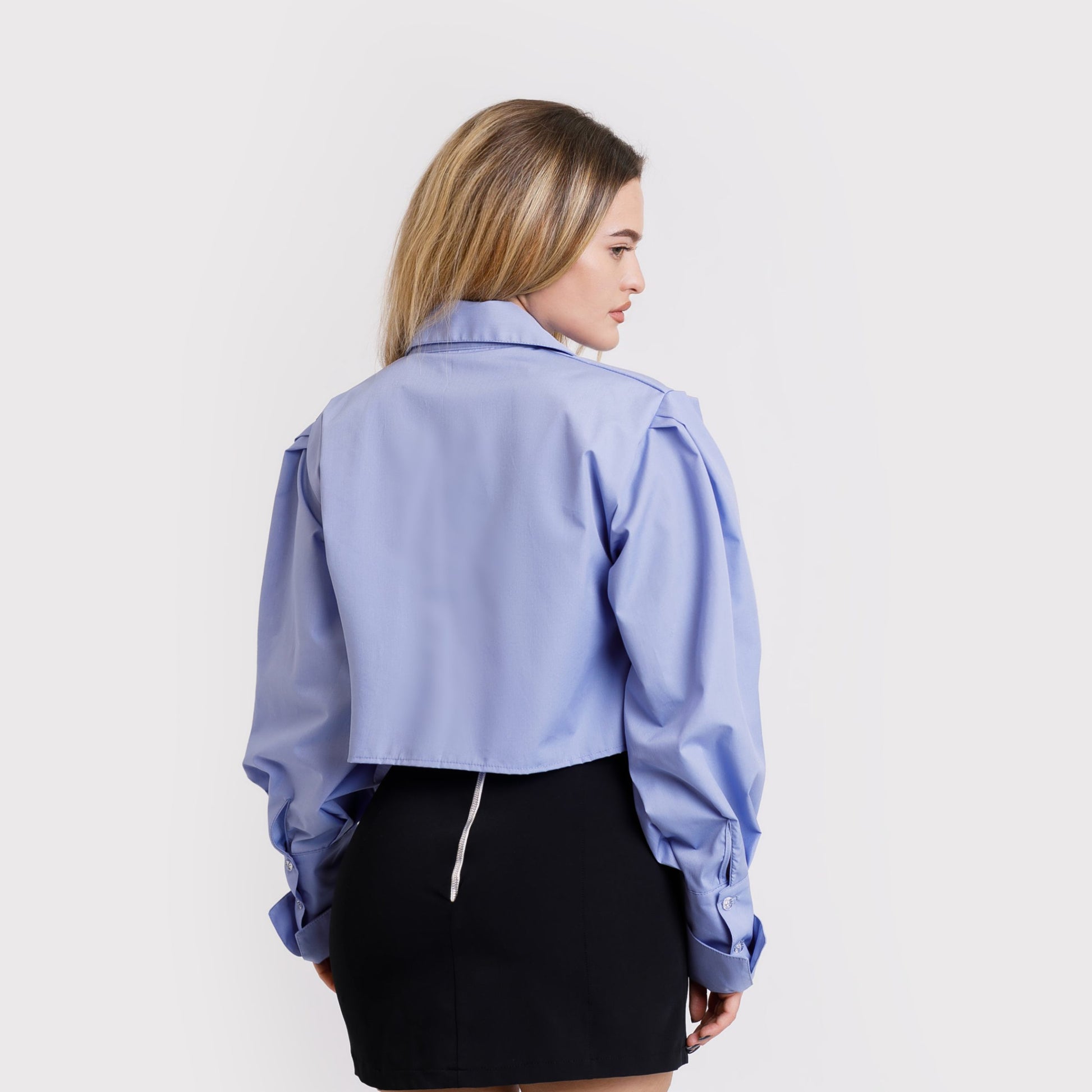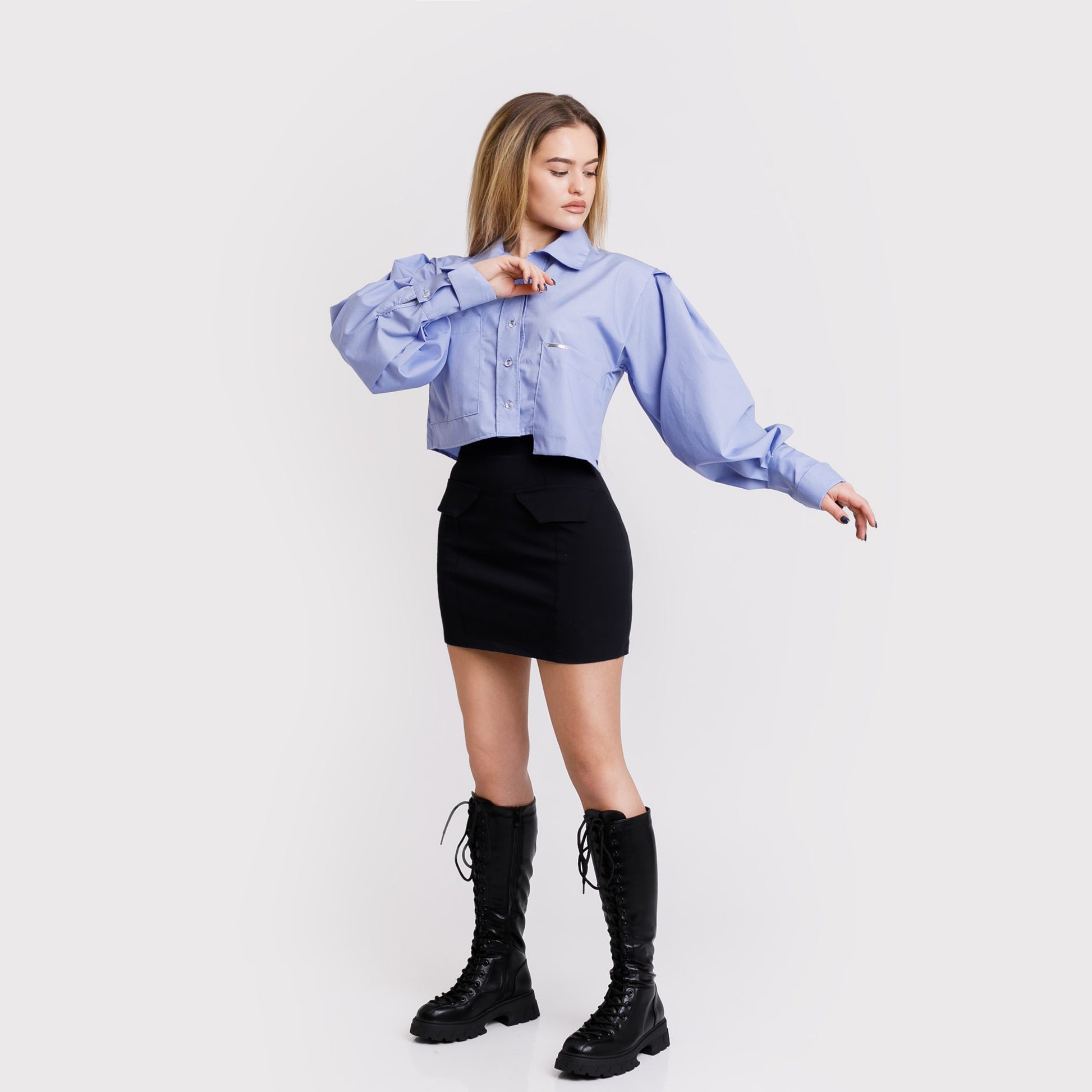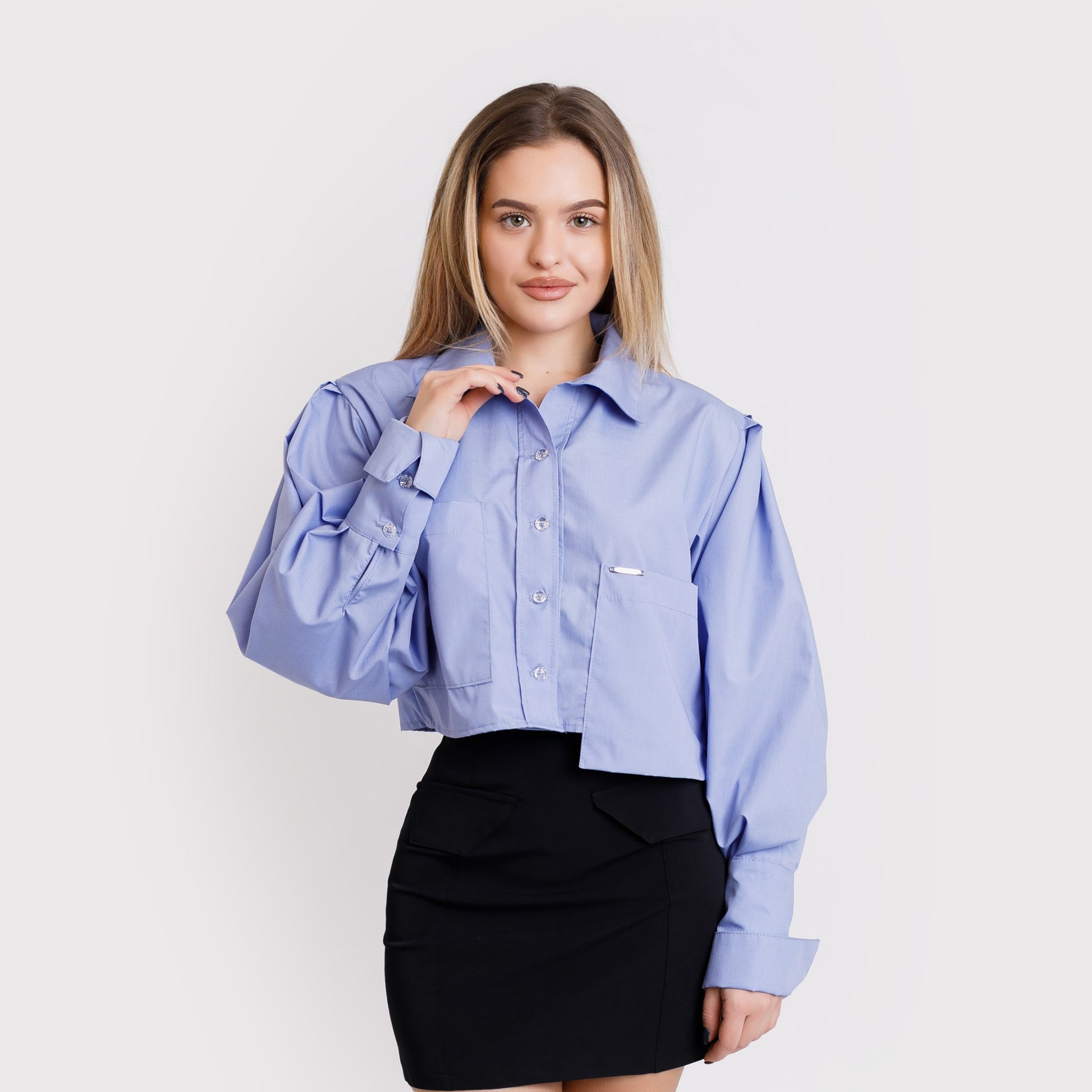 Camasa scurta cu buzunare asimetrice - albastra