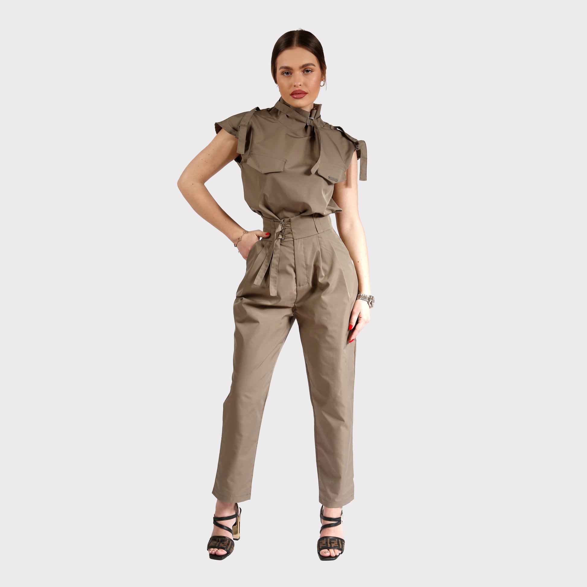 Compleu ajustabil din 2 piese, bluză și pantaloni - maro