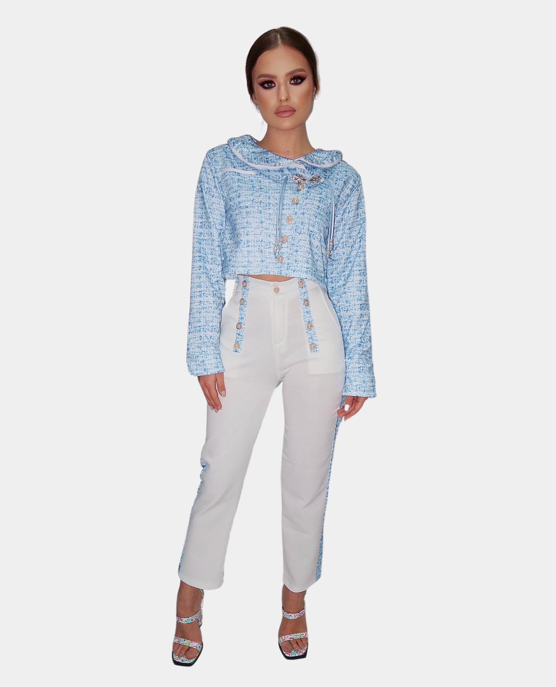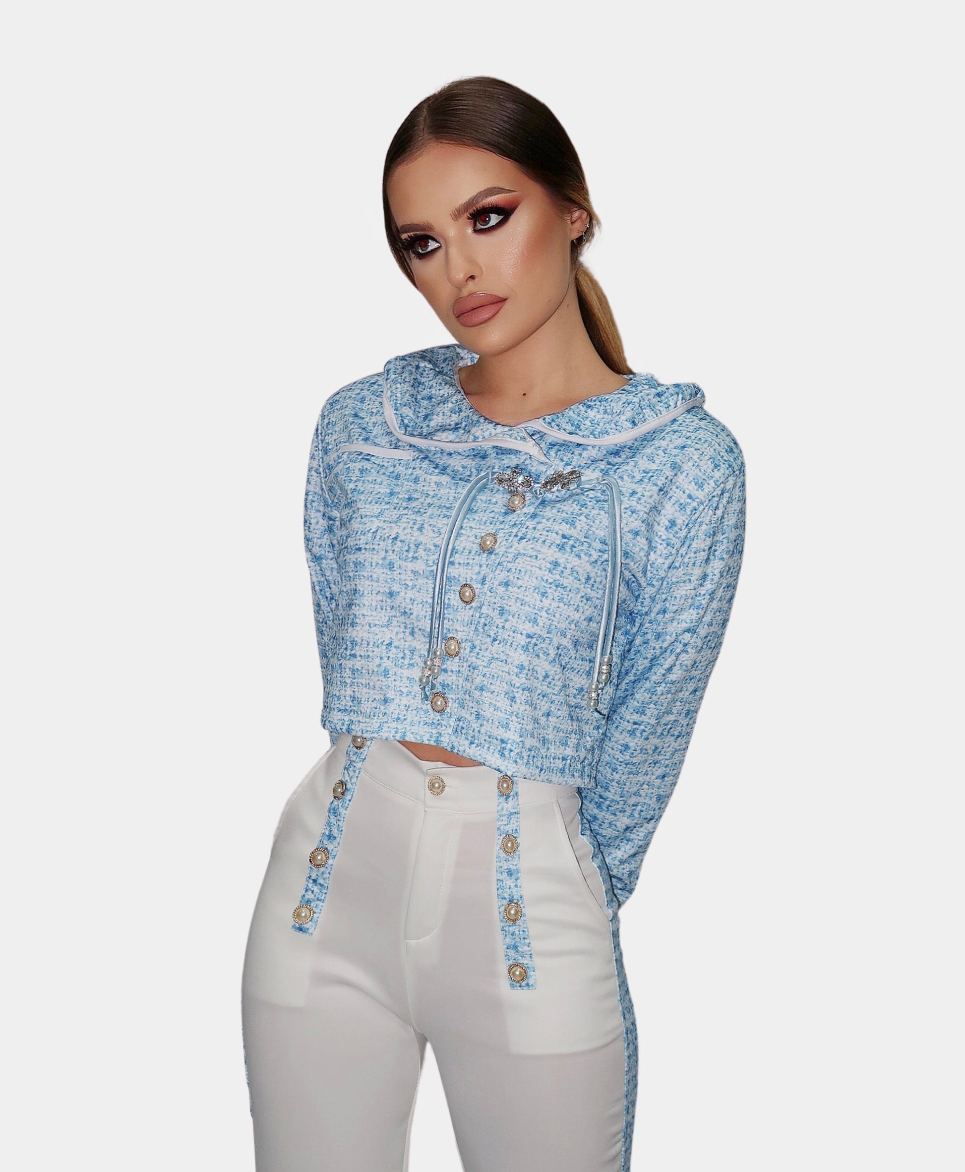 Compleu din 2 piese, bluză și pantaloni - albastru