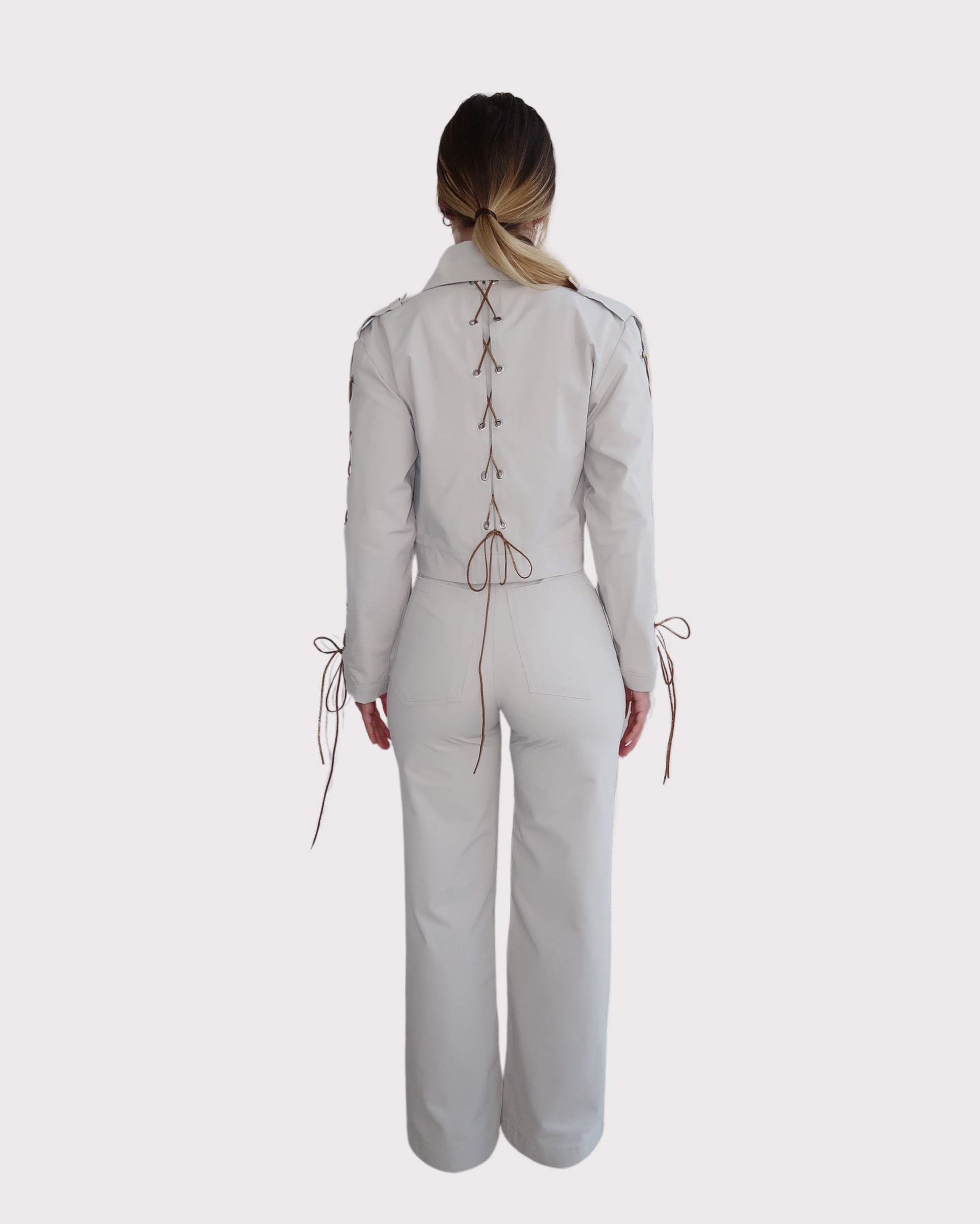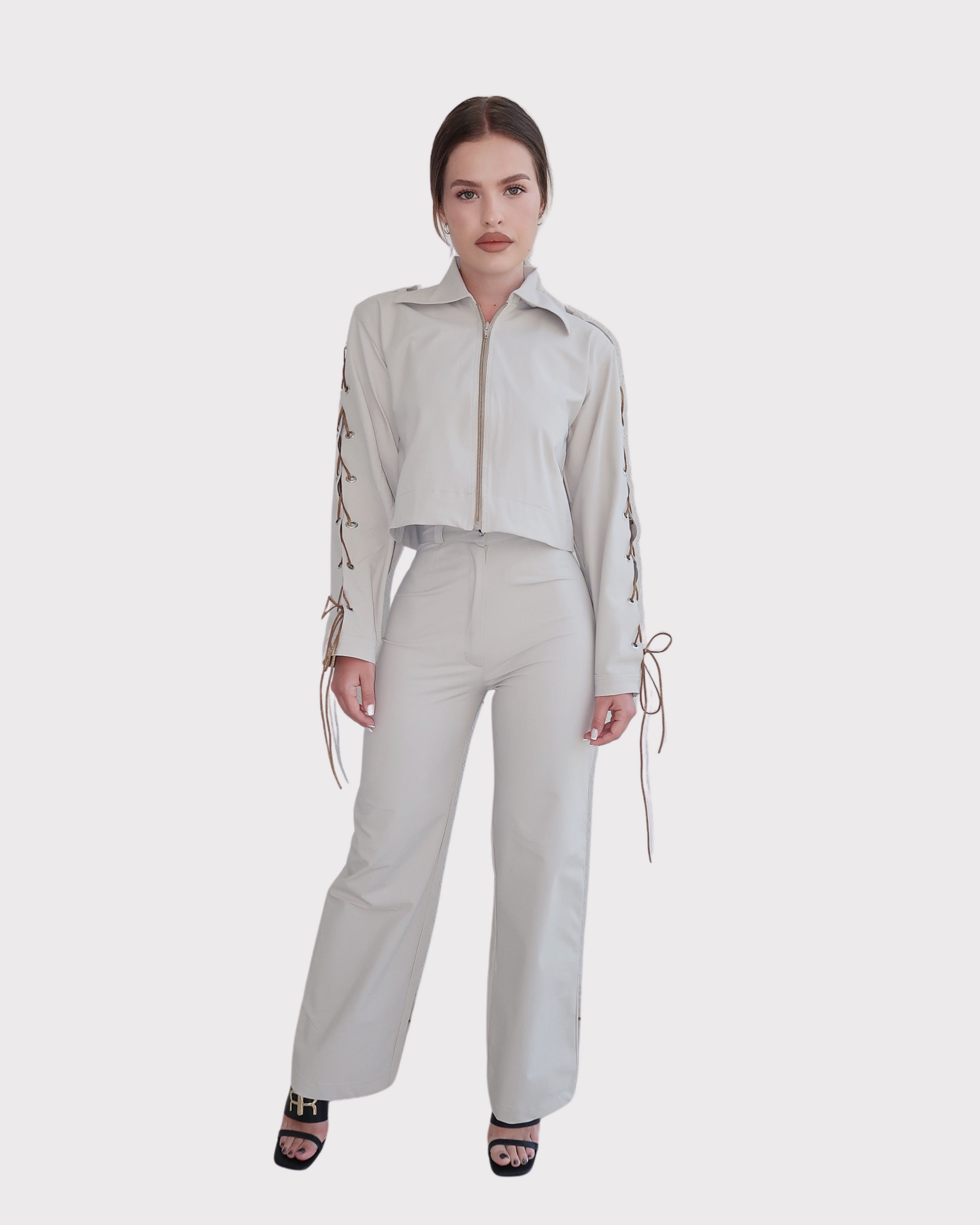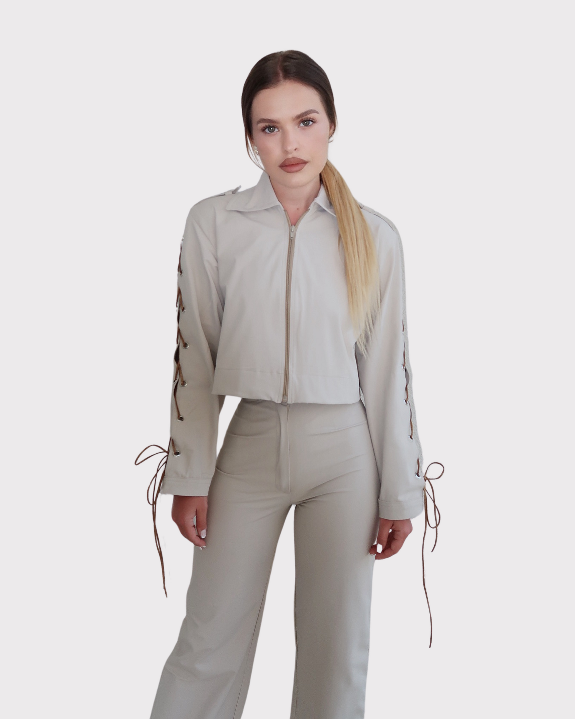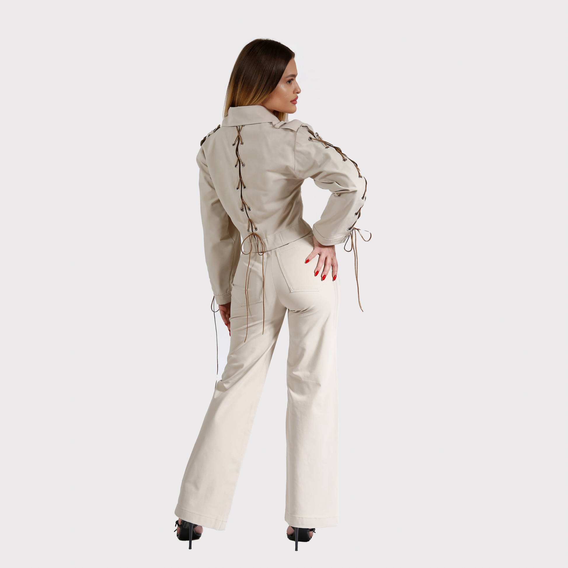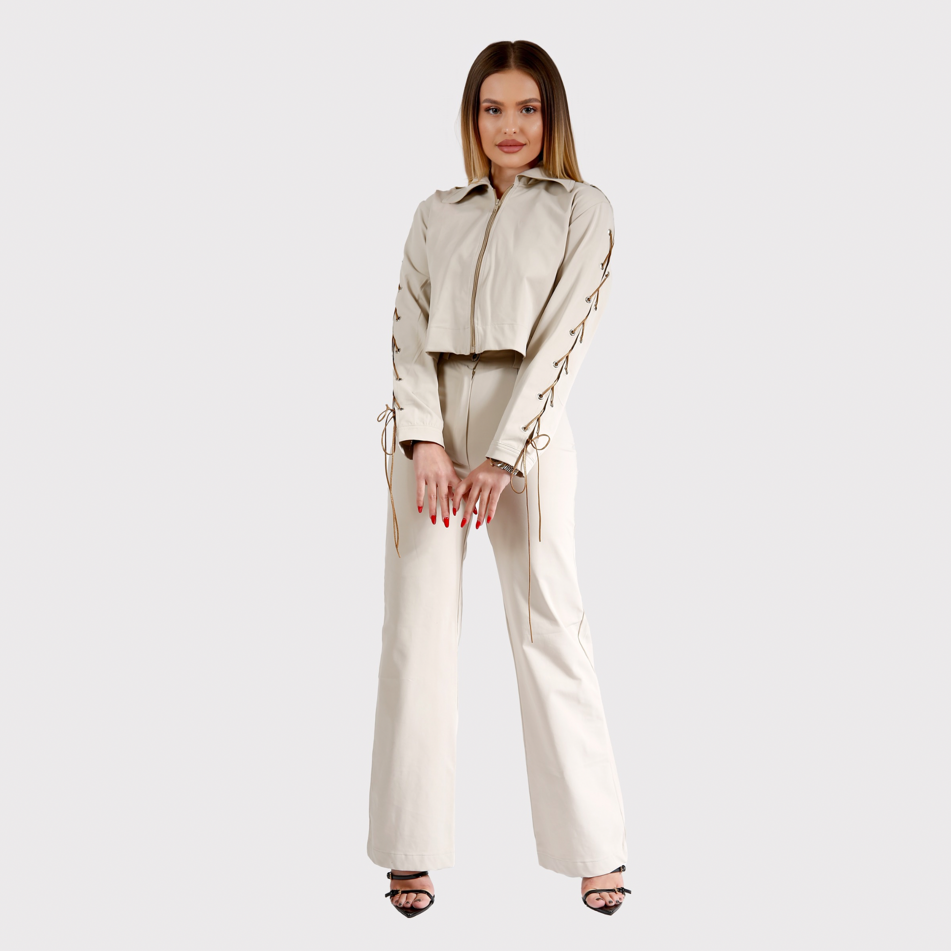 Compleu din 2 piese, geaca si pantaloni cu snur - crem
