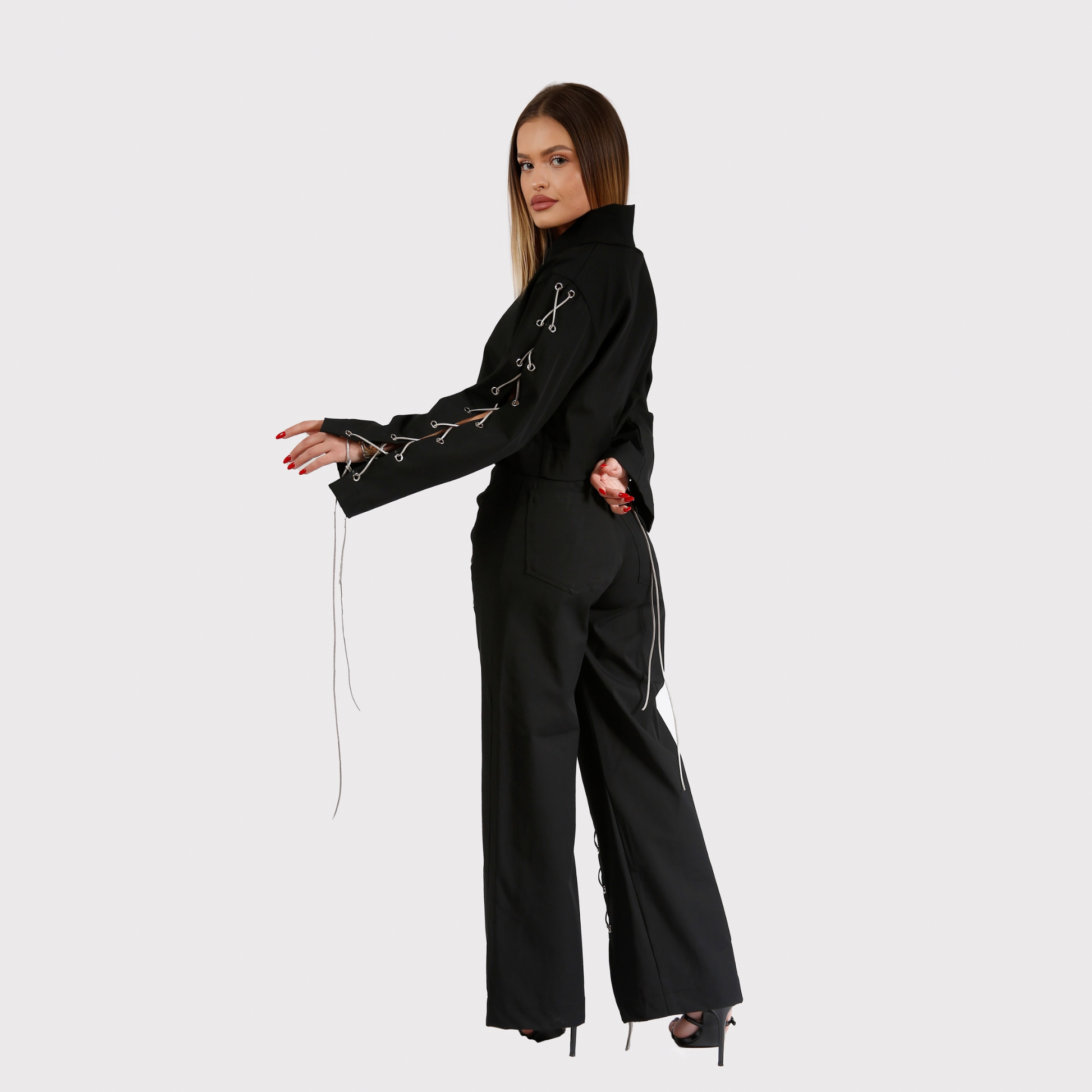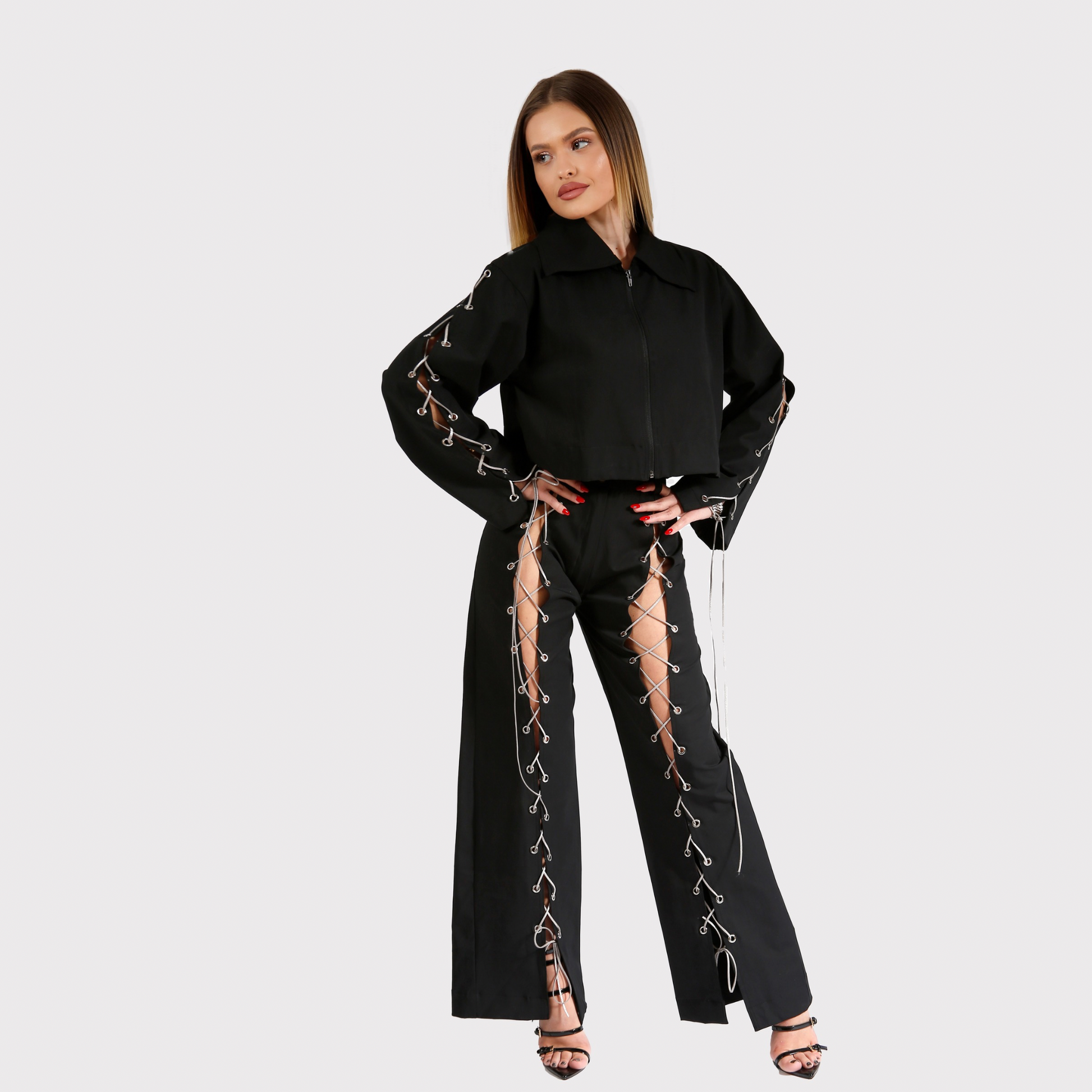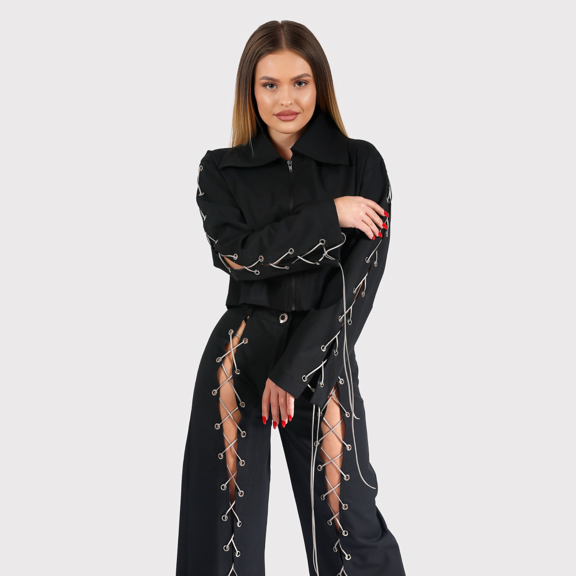 Compleu din 2 piese, geaca si pantaloni cu snur - negru