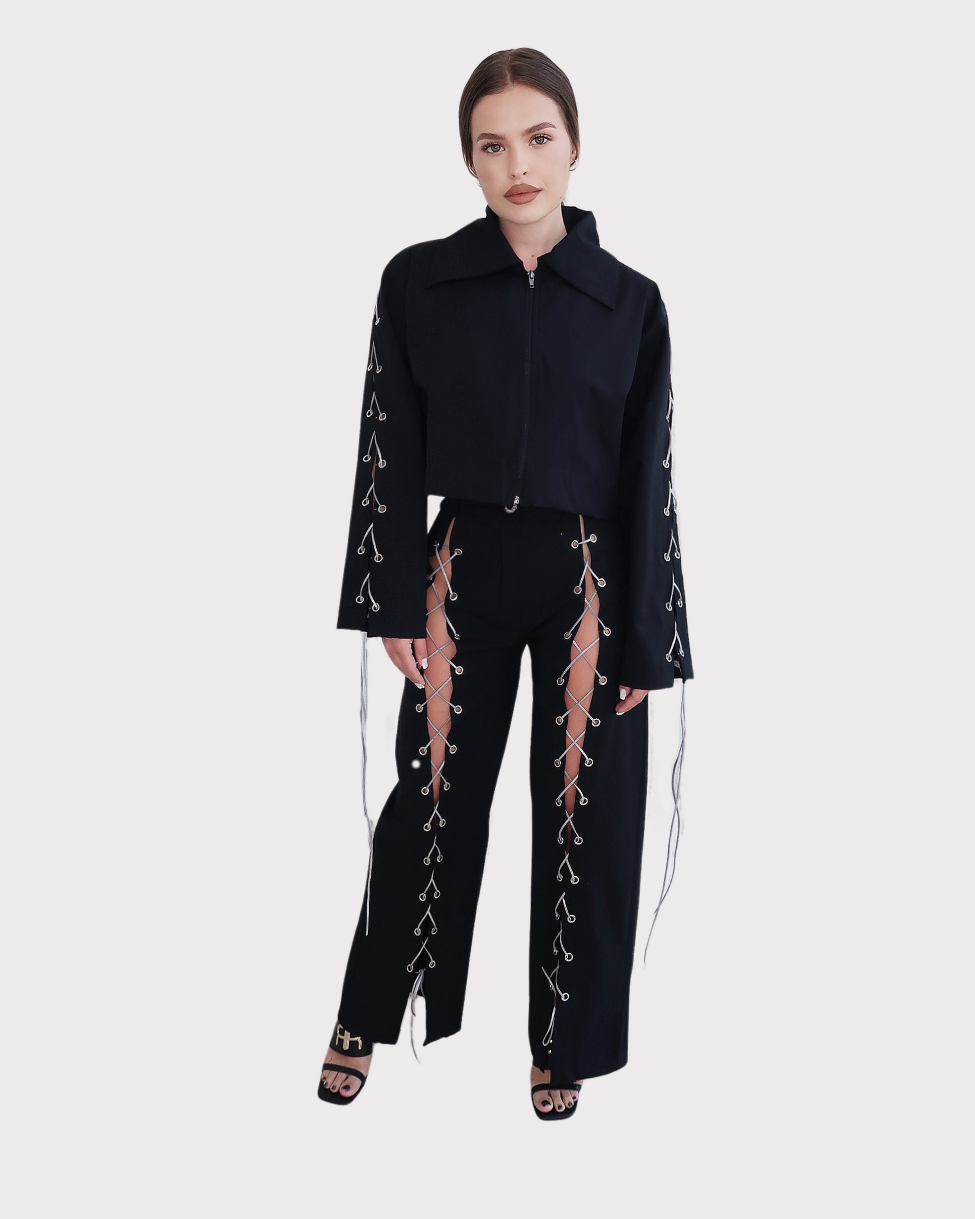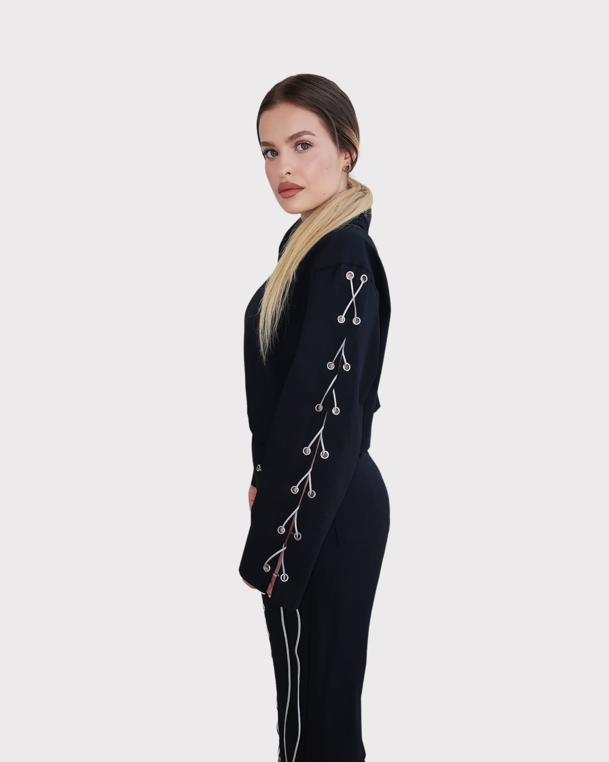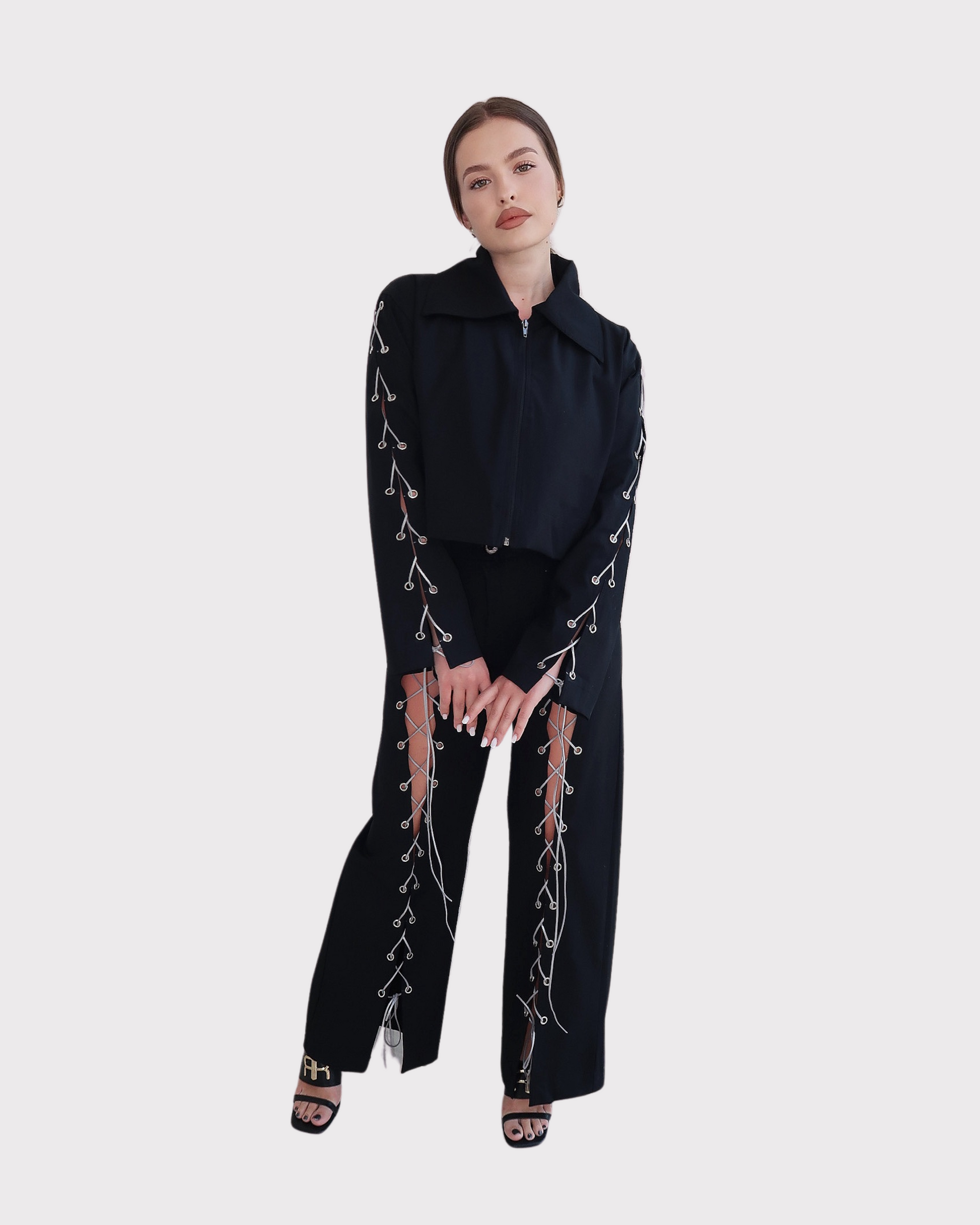 Compleu din 2 piese, geaca si pantaloni cu snur - negru
