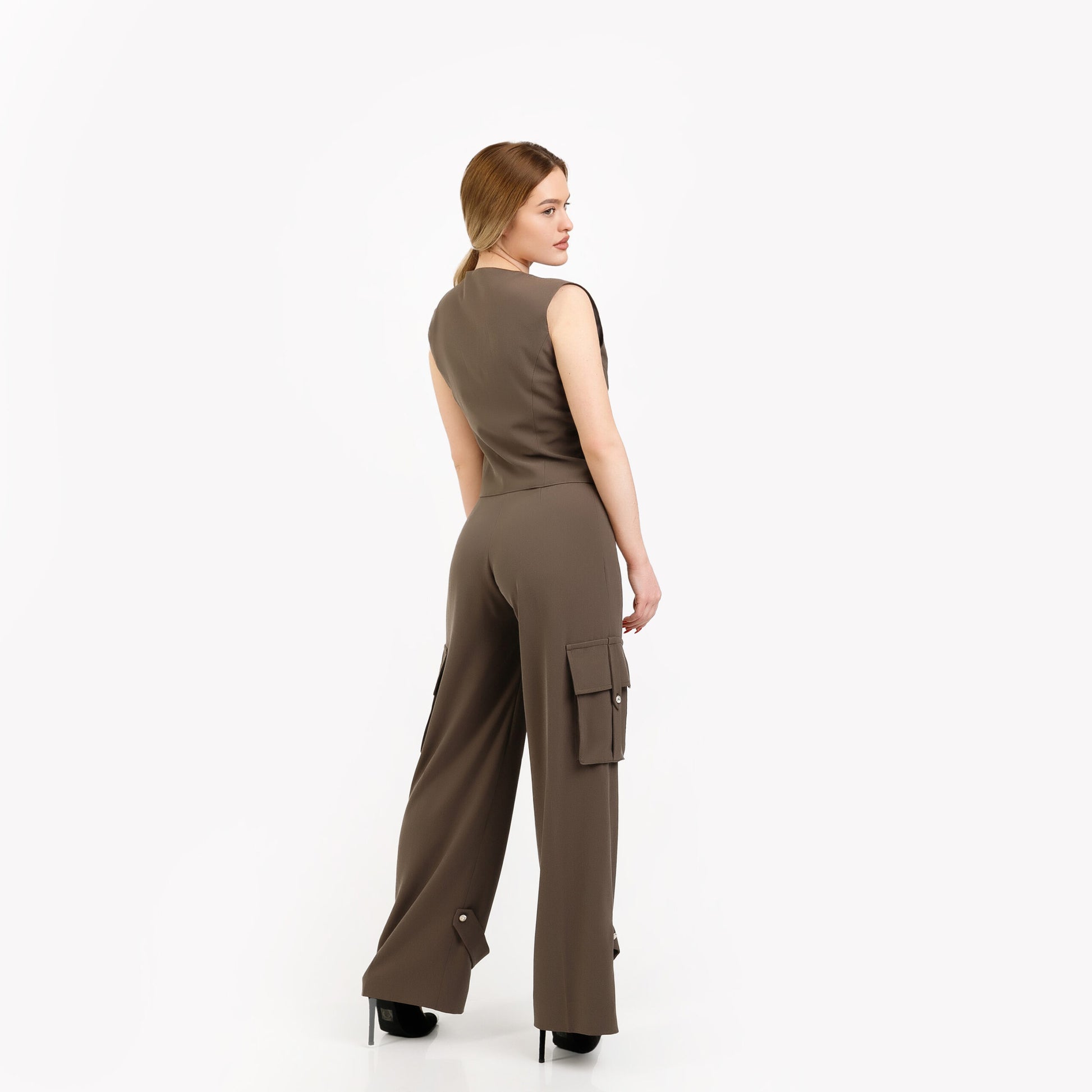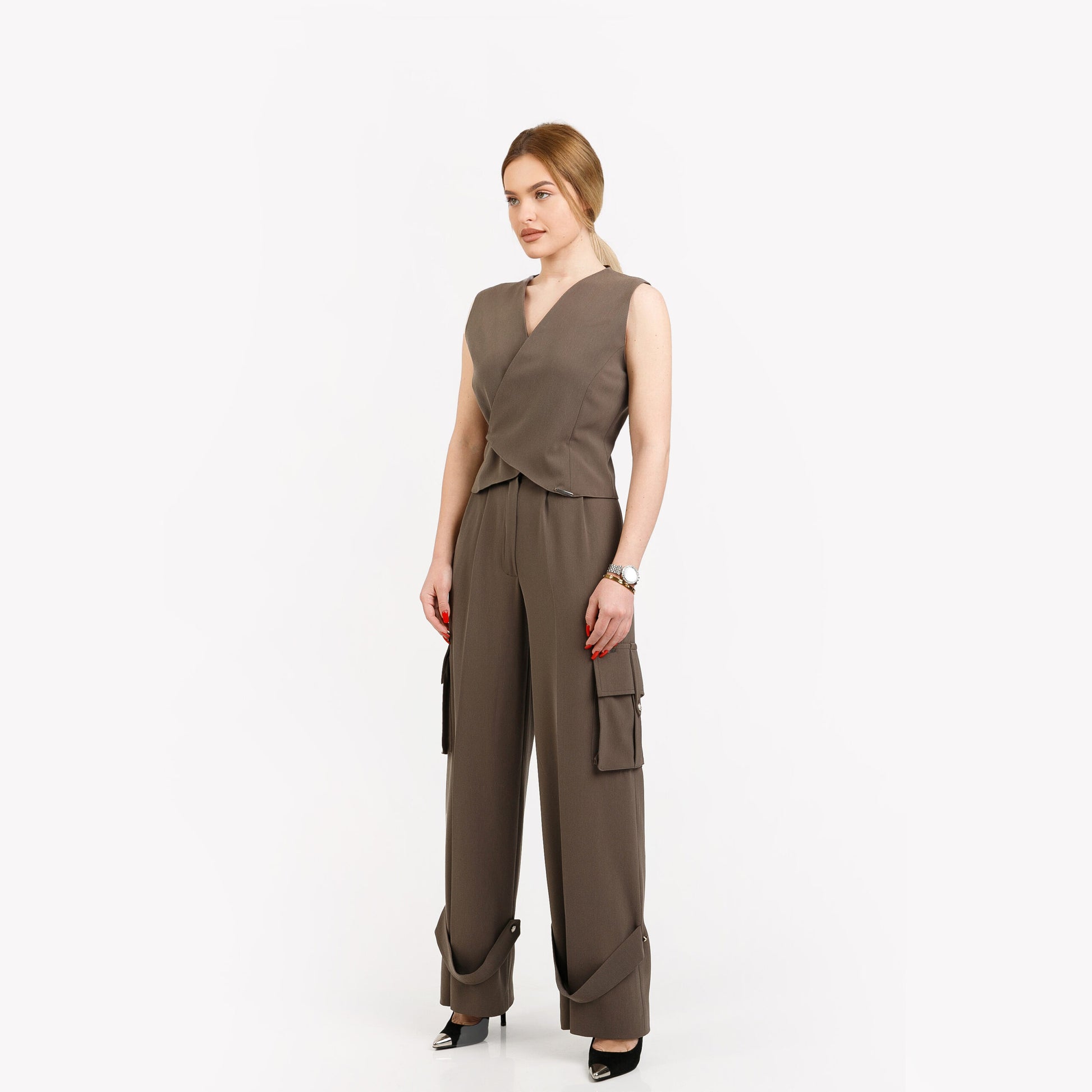 Compleu din 2 piese, vesta si pantaloni cargo - maro