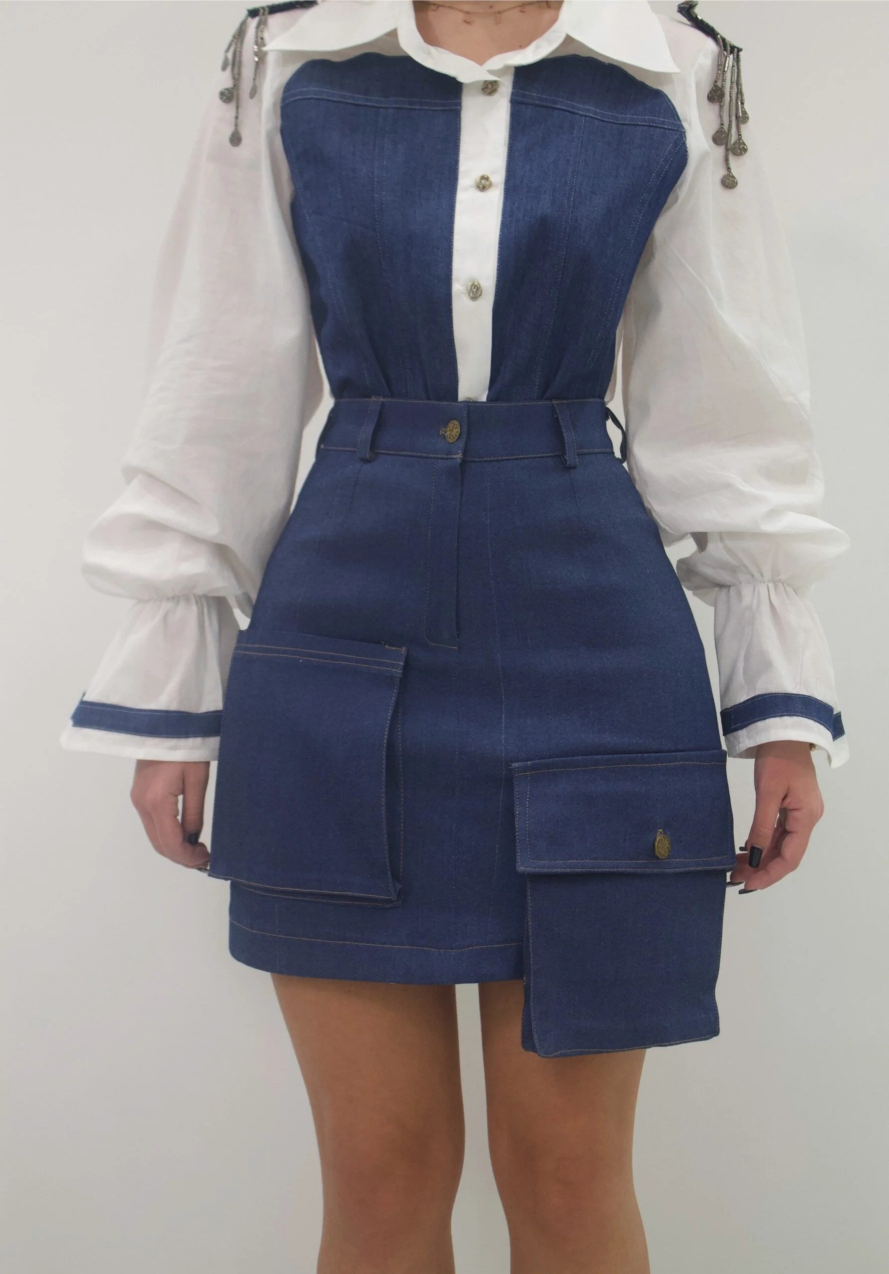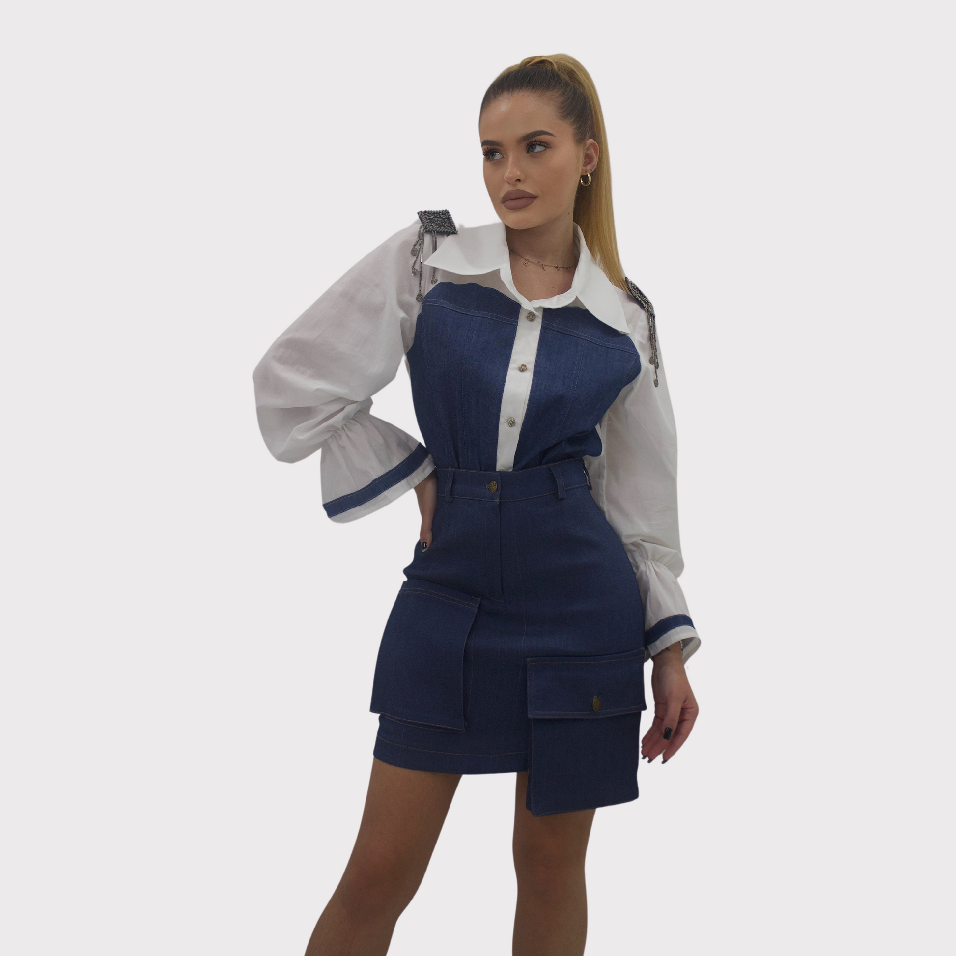 Compleu format din cămașă și fustă din denim
