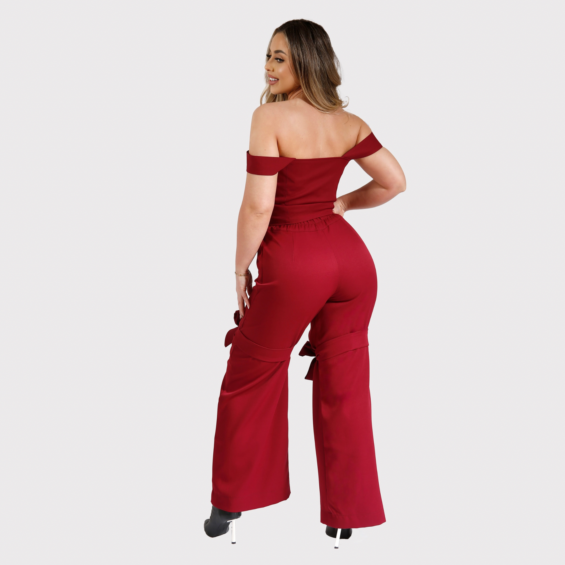 Compleu funde din 2 piese, top și pantaloni - visiniu
