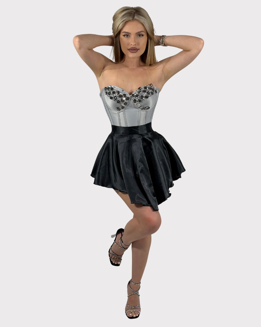 Fusta asimetrica scurta cu pantalon atasat - negru