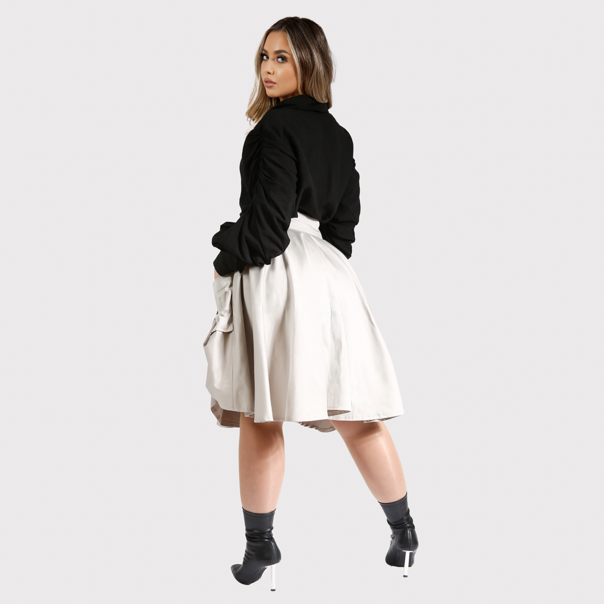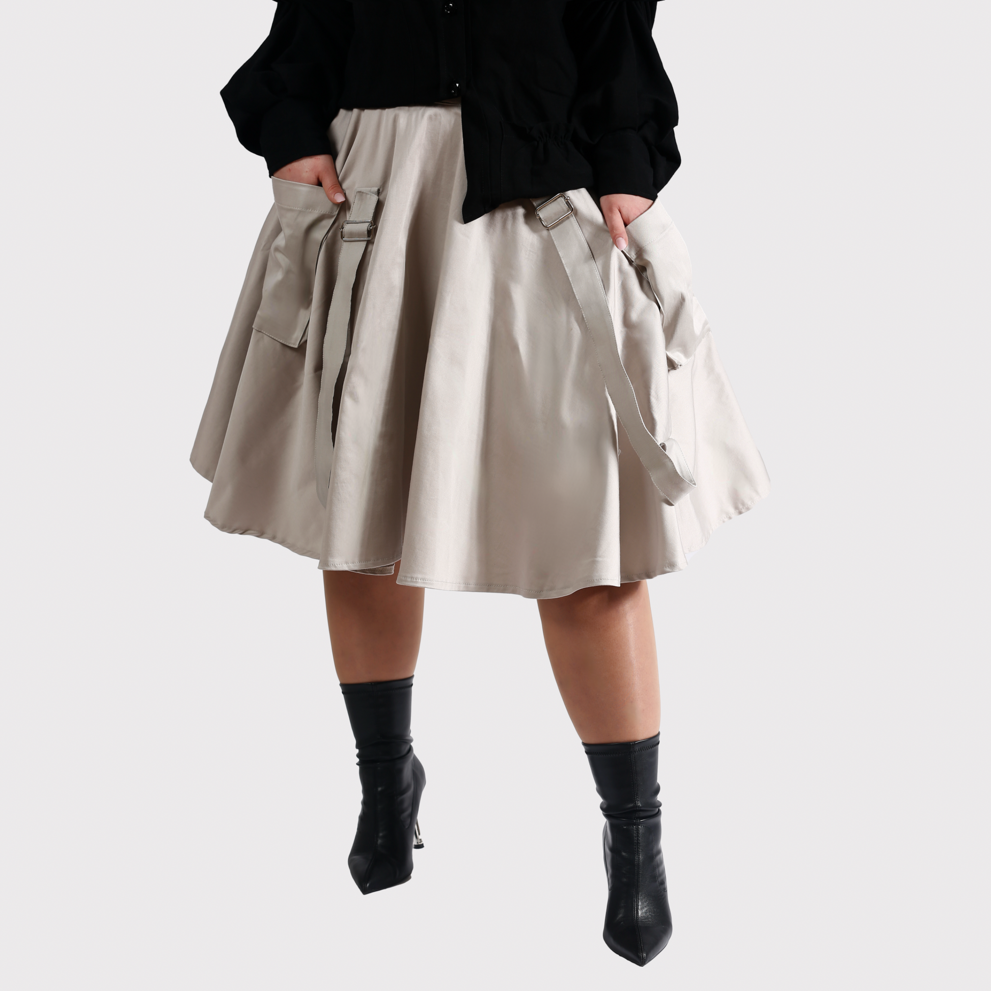 Fustă cu croi lejer și catarame reglabile pentru un fit personalizat. Un mix între funcționalitate și stil boem urban.