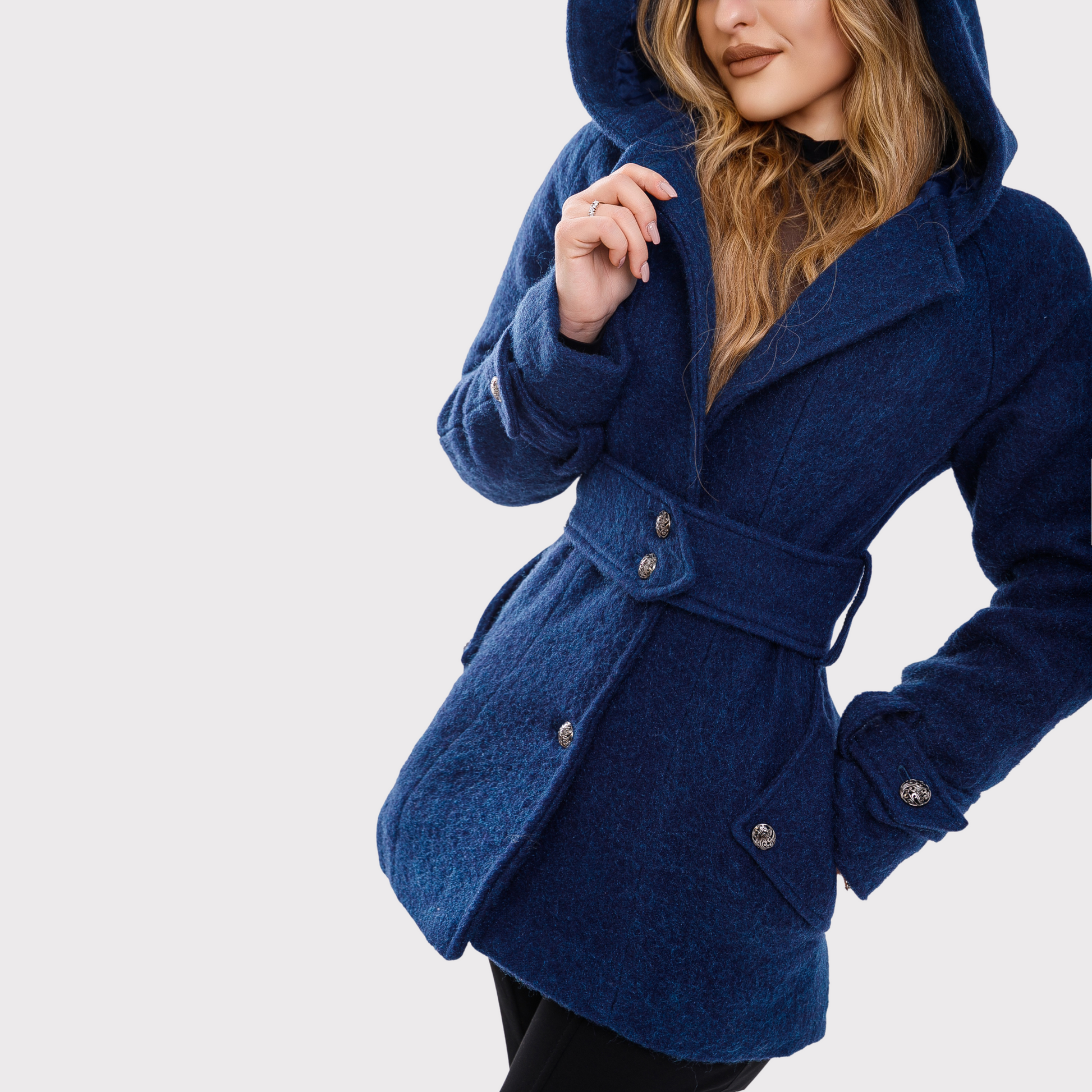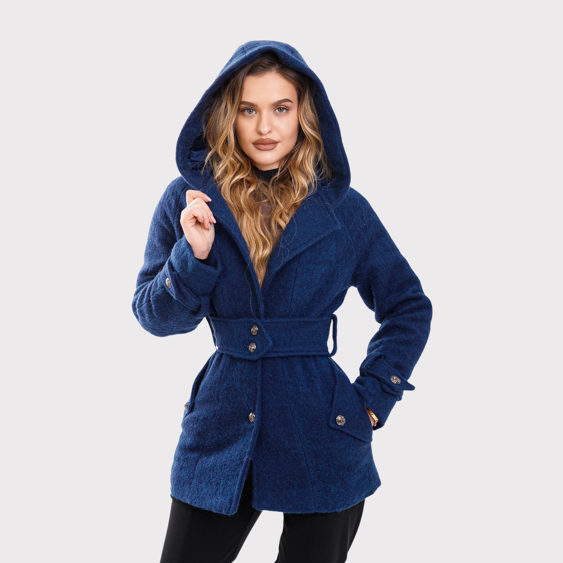 Palton scurt cu gluga - albastru
