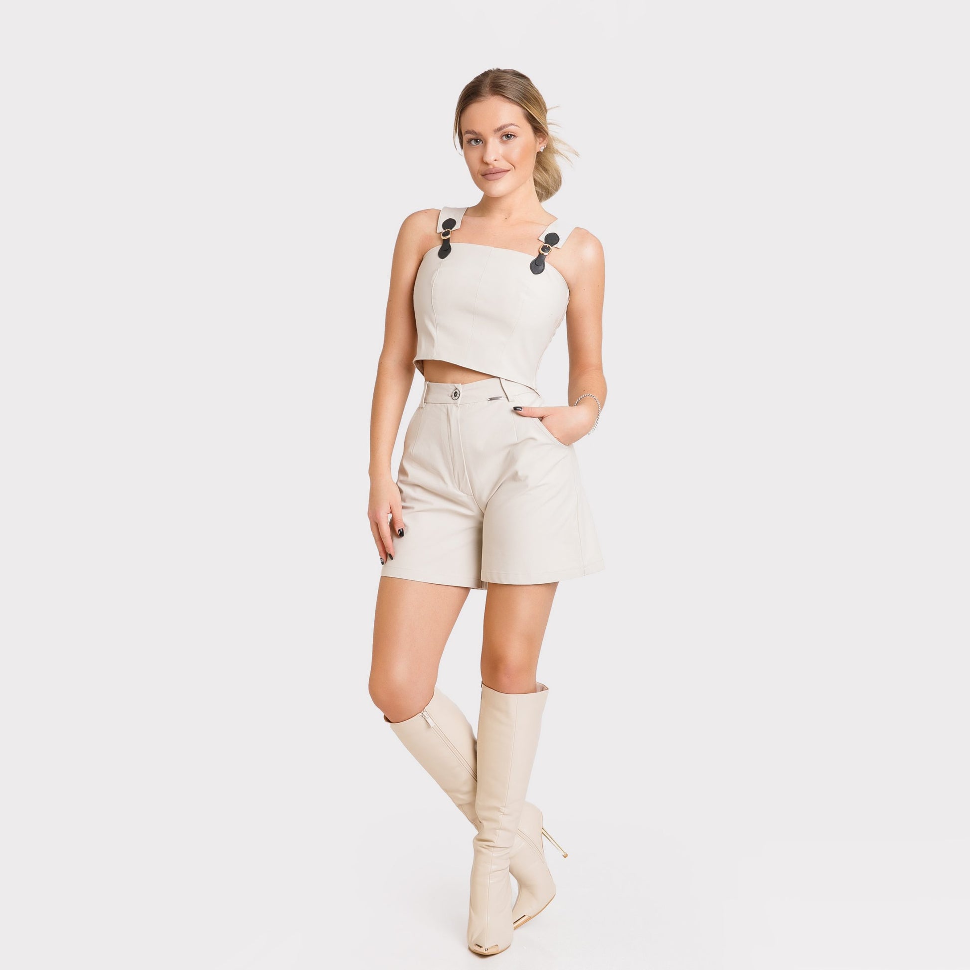 Pantalon scurt cu fusta detasabila – crem