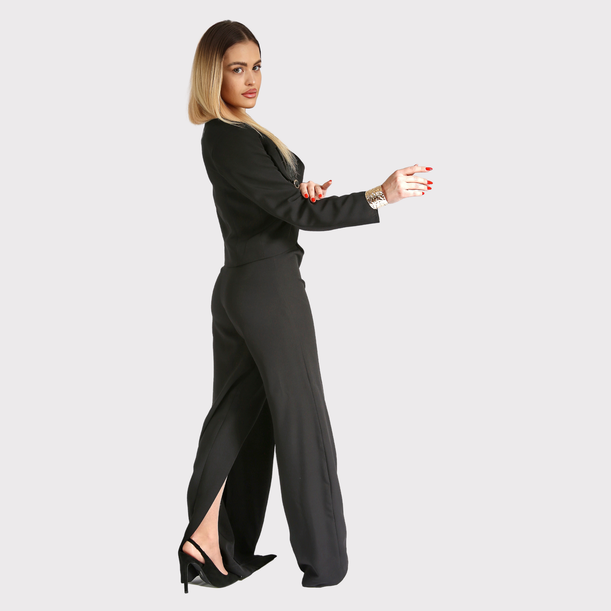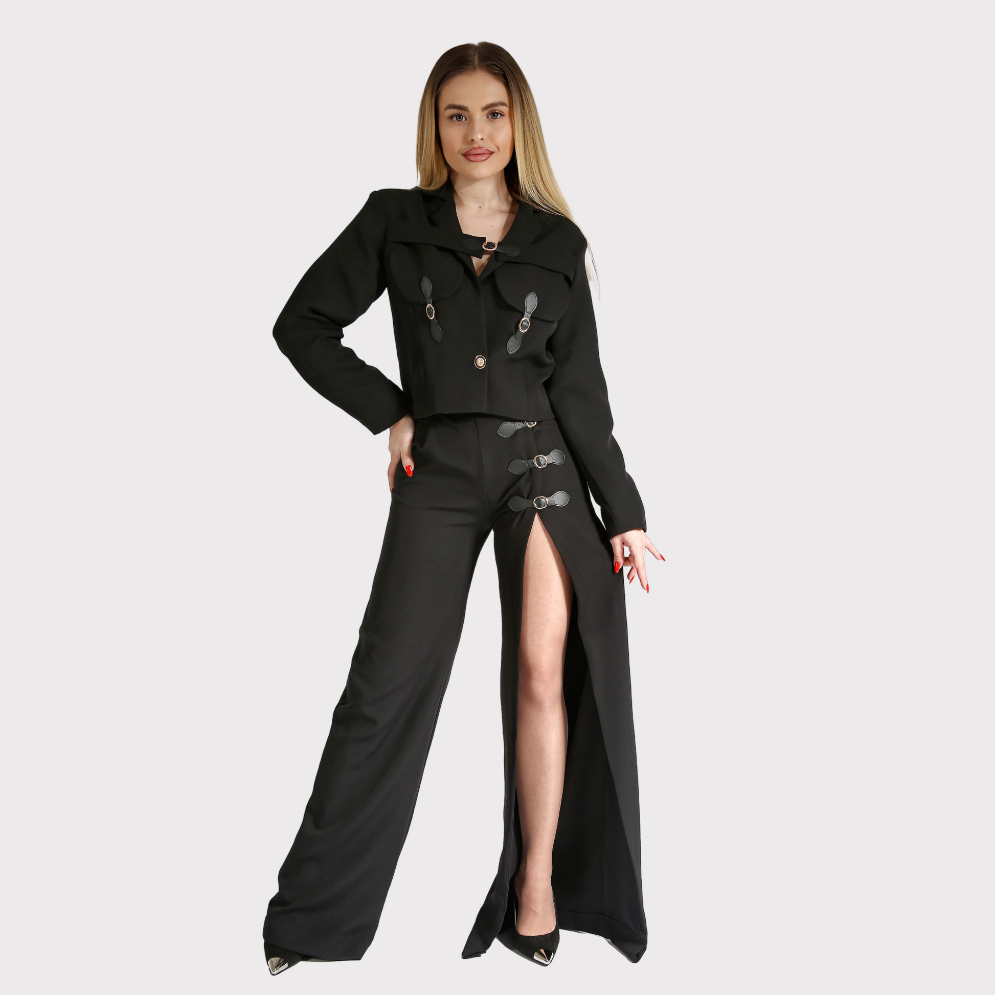 Pantaloni cu talie înaltă și catarame ajustabile – negri