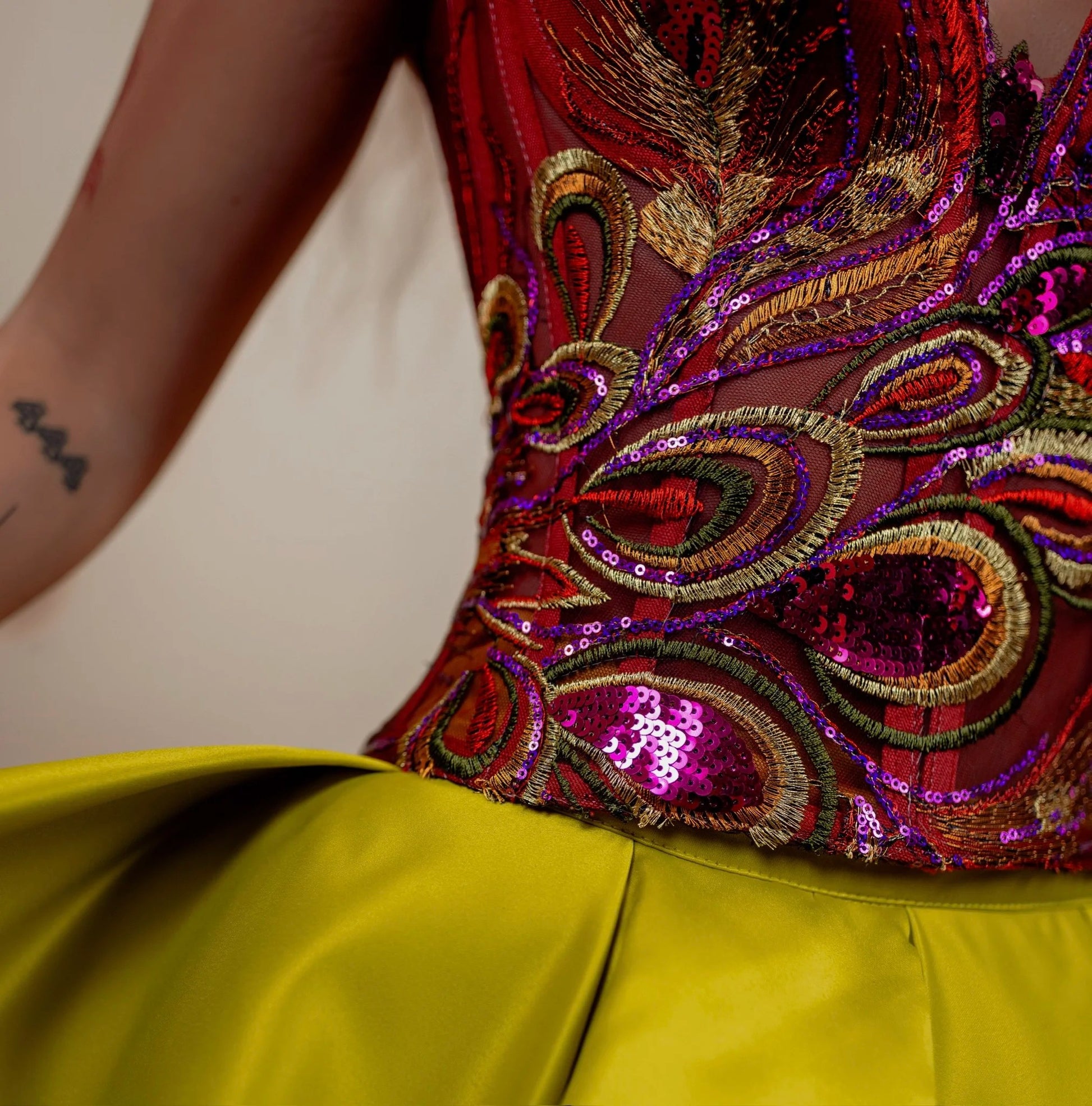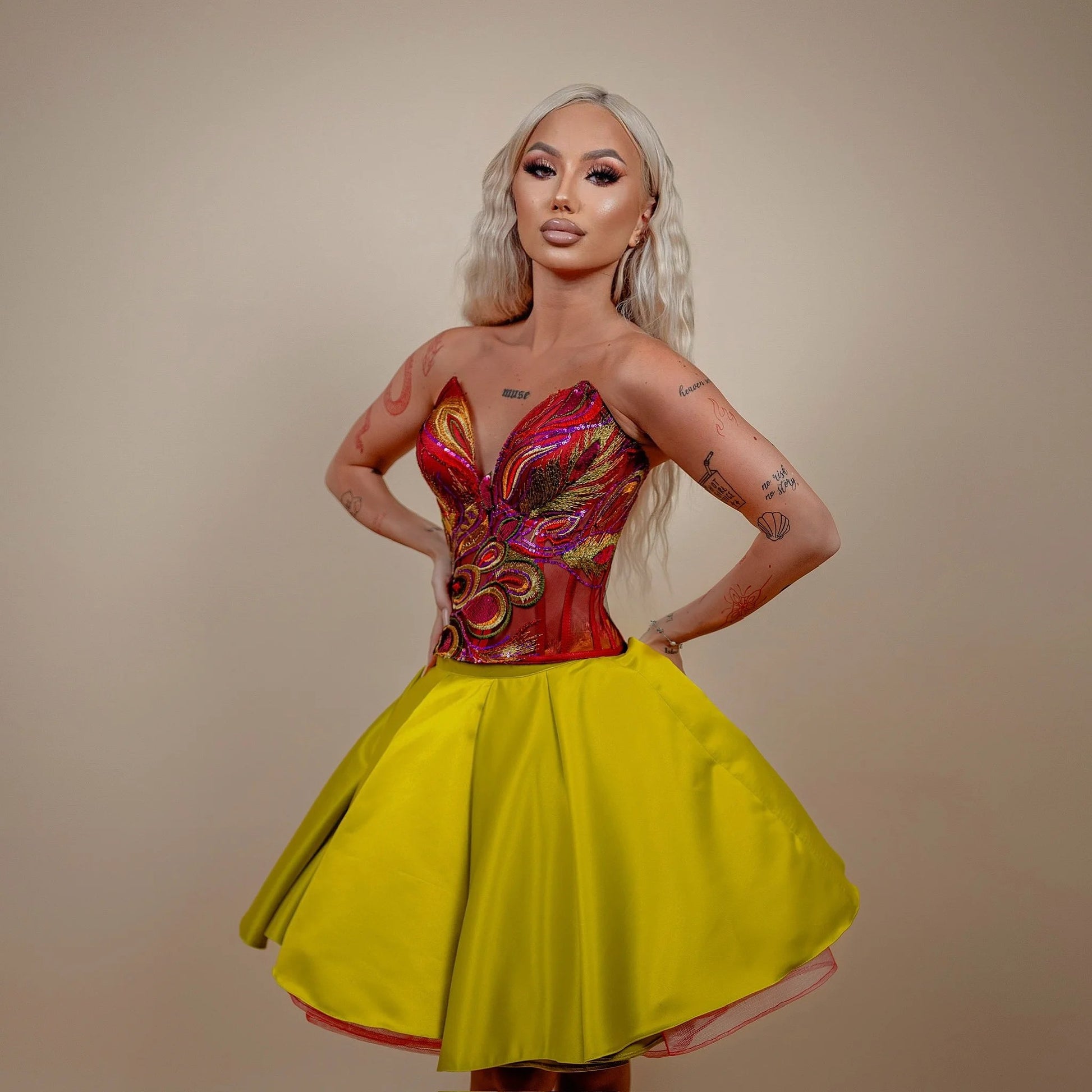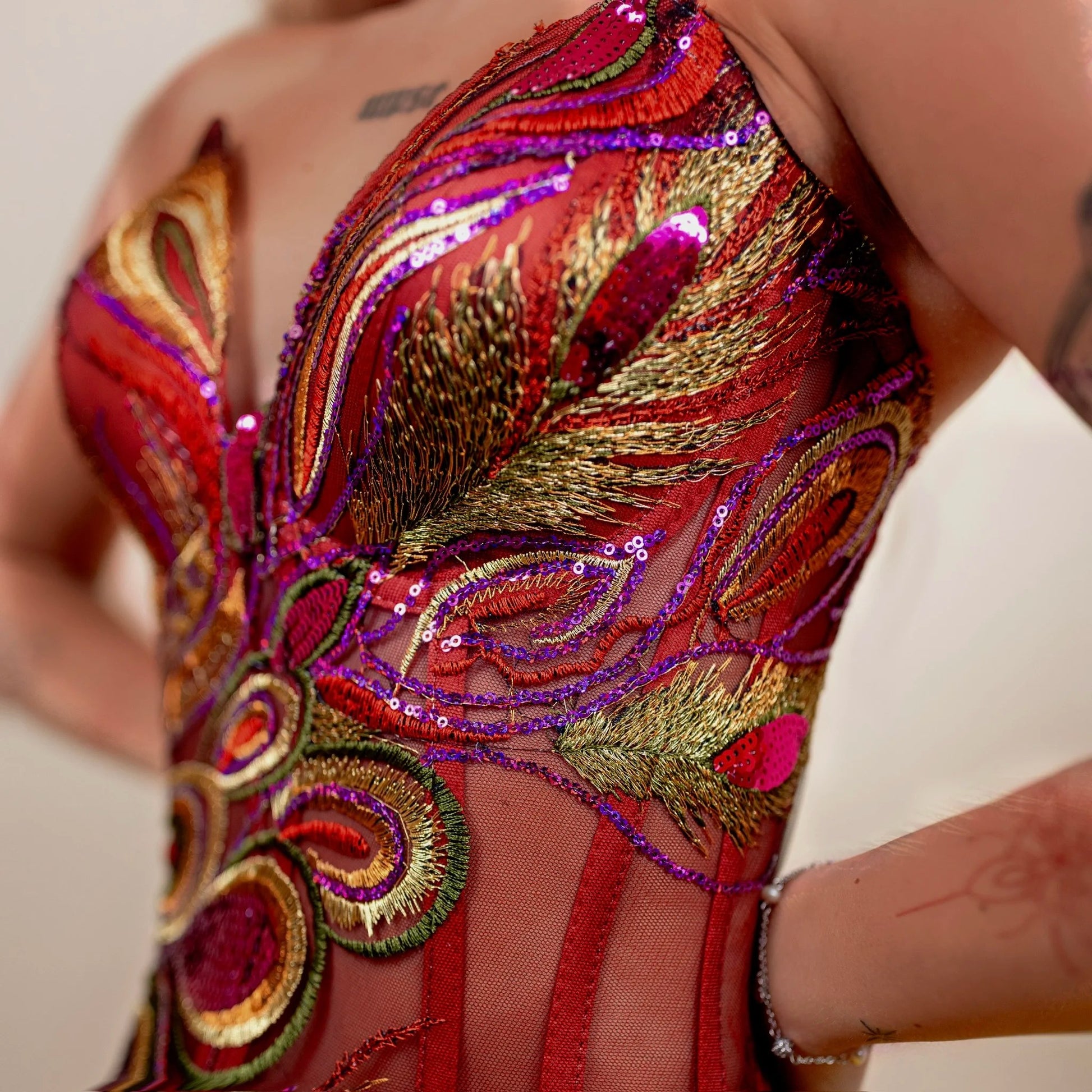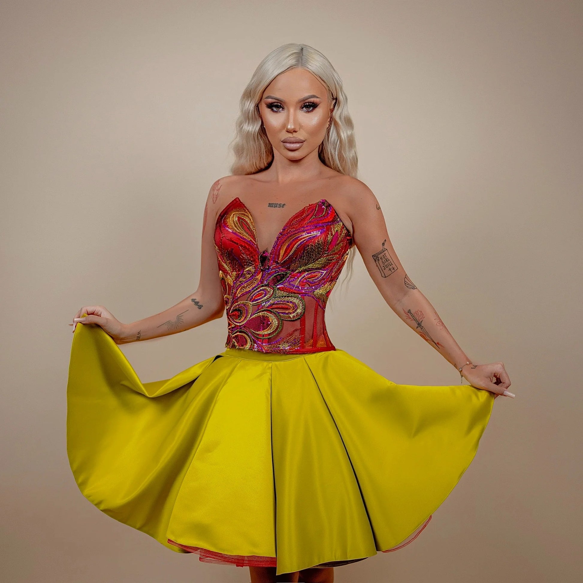 Rochie din 2 piese: corset si fusta scurta – roșu