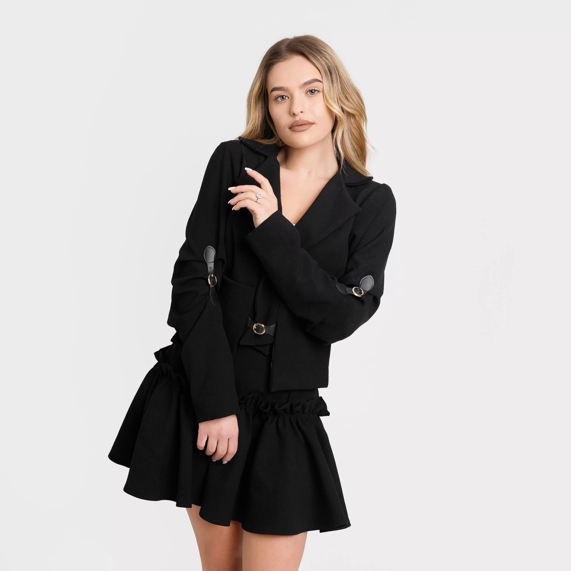 Sacou scurt cu catarame – negru