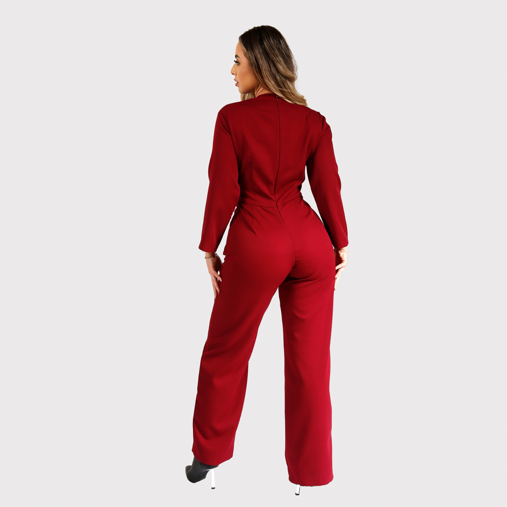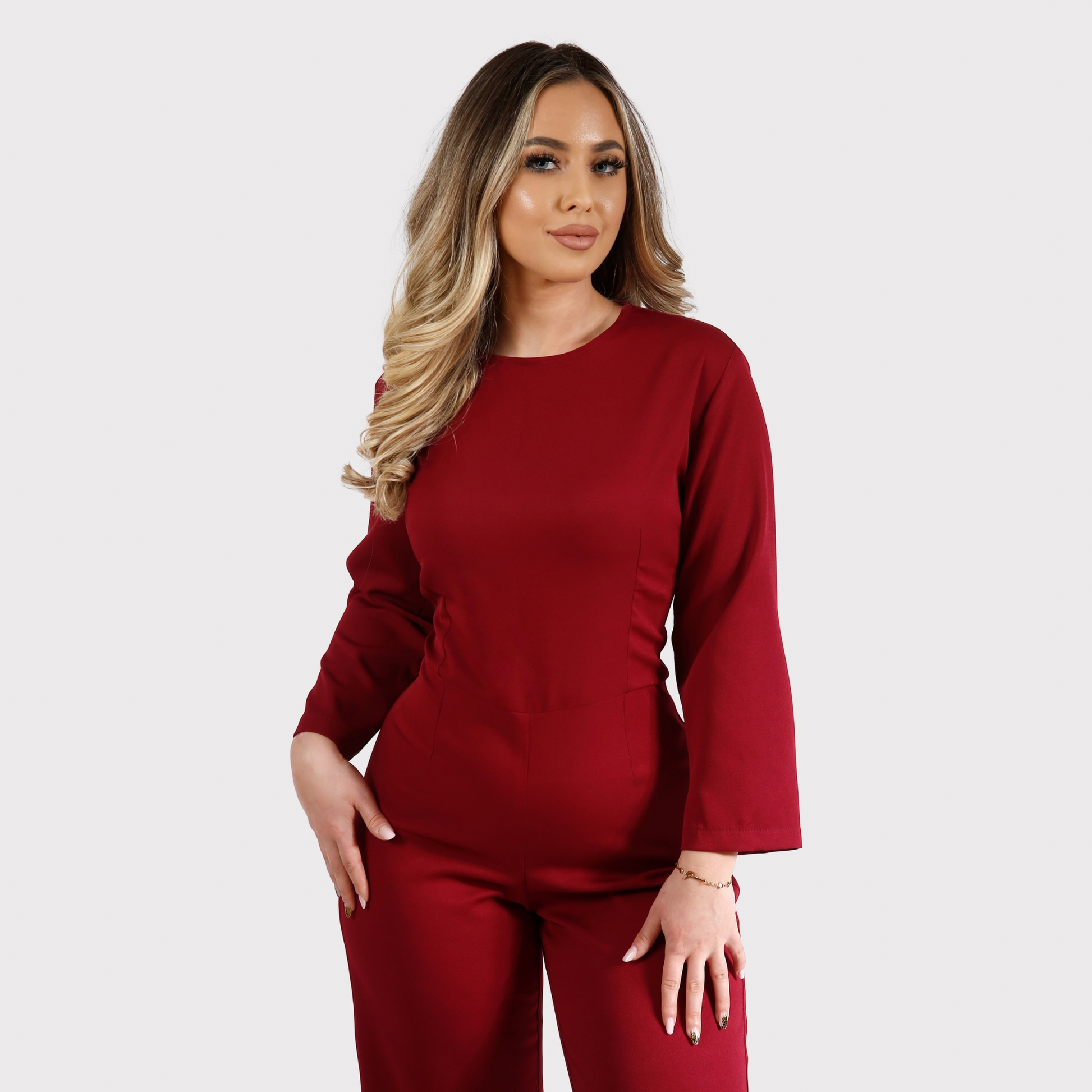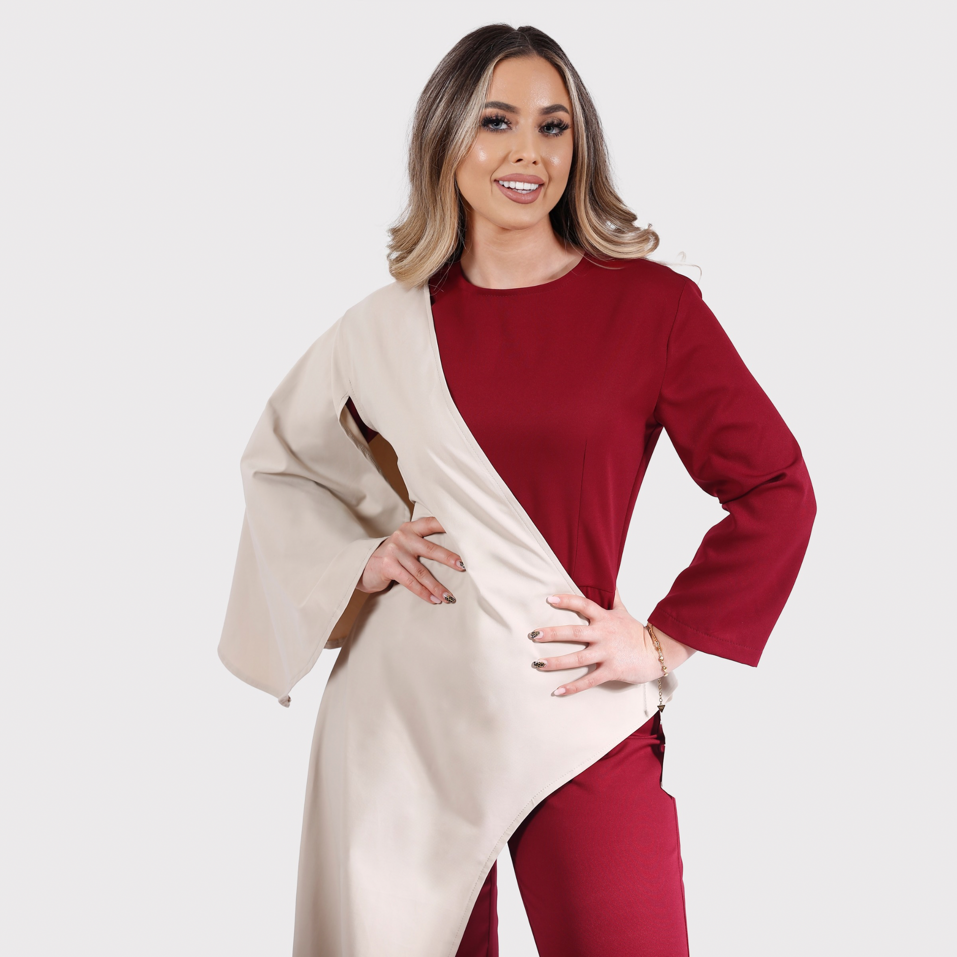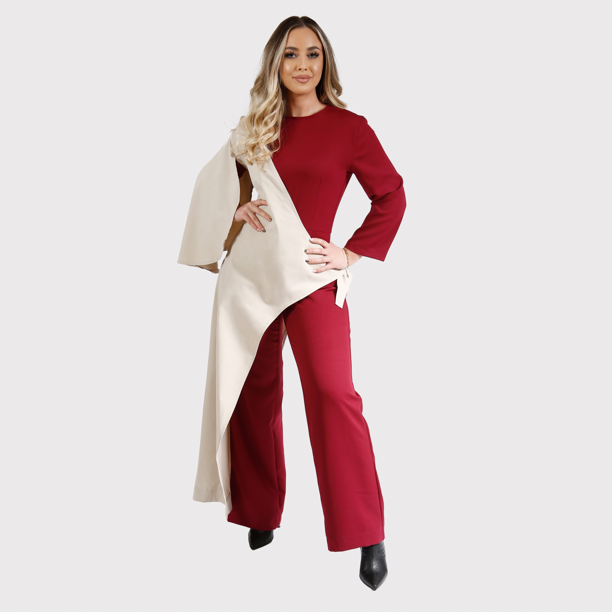 Salopeta din 2 piese, piesă asimetrică gri overlay și salopetă - visiniu
